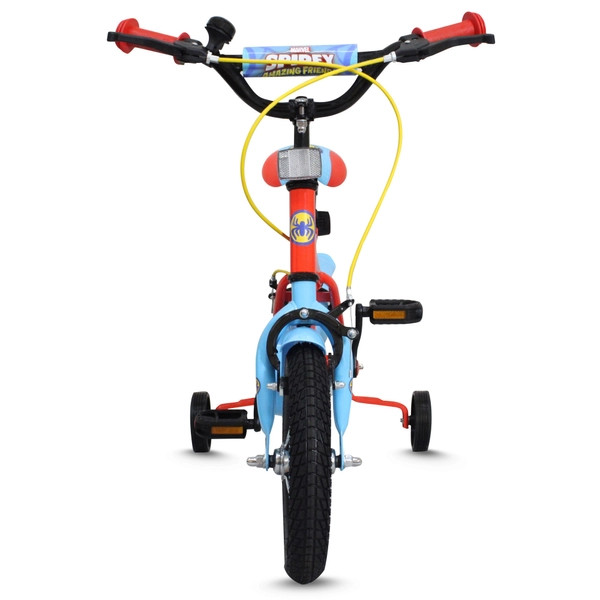 A pótkerekek addig biztosítják a tartást, ameddig szükséges. Később könnyen levehetők. A mellékelt láncvédő védi az ujjakat és a ruházatot, lehetővé téve a gyerekek számára, hogy teljes mértékben a kormányzásra és a pedálozásra koncentrálhassanak. 12 hüvelykes méretével ez a kezdő kerékpár ideális a kicsik számára, akik Pókemberrel szeretnék felfedezni a szabadban a terepet, és fokozatosan magabiztosabbá válni.