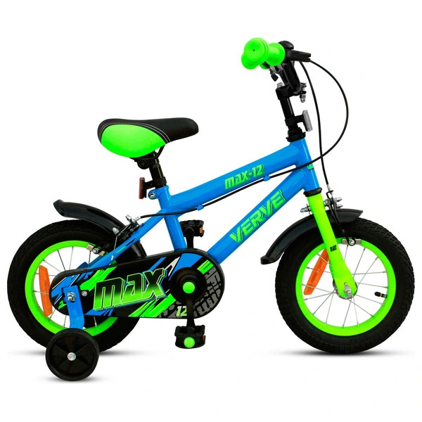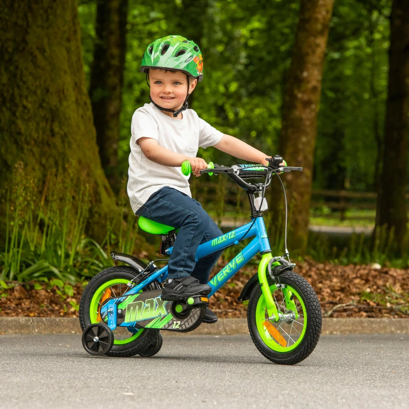 Tartalom: 1x 12 hüvelykes Verve Max gyermekkerékpár pótkerekekkel, kék/zöld