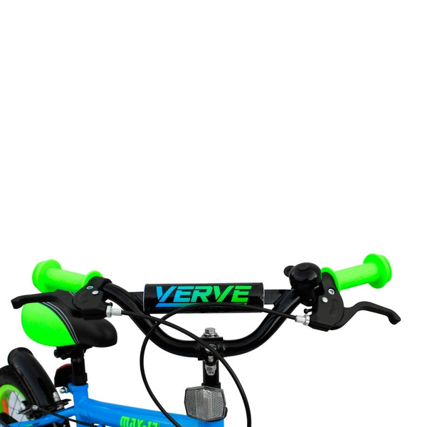 Gazdag, élénk színeivel a Verve Max kialakítása tökéletesen illik a gyerekekhez is: A mély égkék váz élénk neonzöld díszítésekkel találkozik - így a 12 hüvelykes gyermekkerékpár mindig könnyen látható és felismerhető!