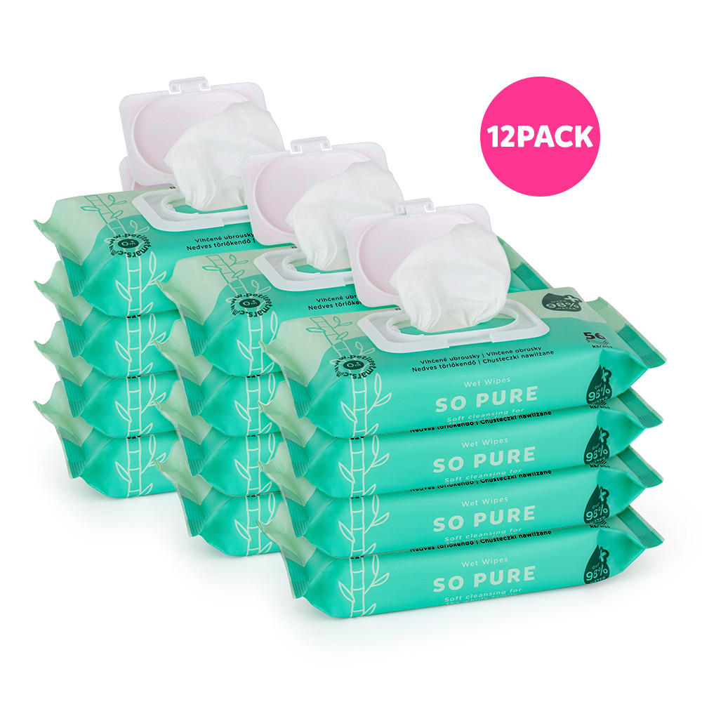 12x PETITE&MARS Nedves törlőkendő SO PURE bambusz, biológiailag lebomló, 56 db