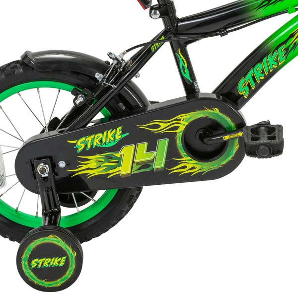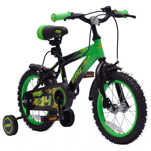 14 colos gyerekkerékpár Strike pótkerekekkel, zöld/fekete