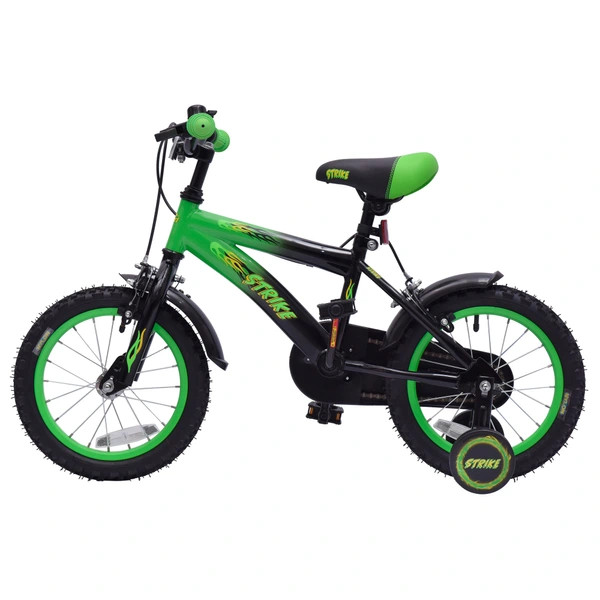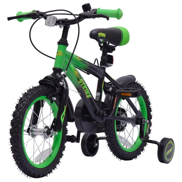 Tartalom: 1x 14 colos Strike gyermekkerékpár pótkerekekkel, zöld/fekete