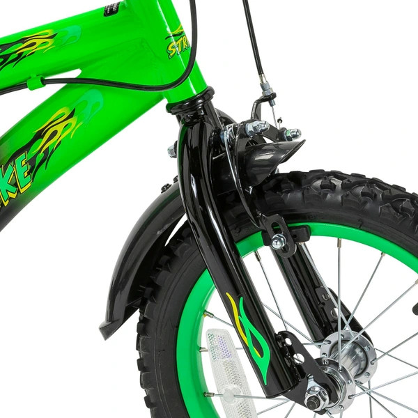 A 14 colos légtömlős gumiabroncsokkal és levehető pótkerekekkel ellátott Strike gyermekkerékpár ideális első kerékpár! Acélváza robusztussá teszi, a zárt láncvédő pedig a fényvisszaverőkkel együtt nagyfokú biztonságot nyújt. Az első és hátsó féknyeregnek köszönhetően a fiatal kerékpárosok mindig gyorsan és könnyen megállhatnak.