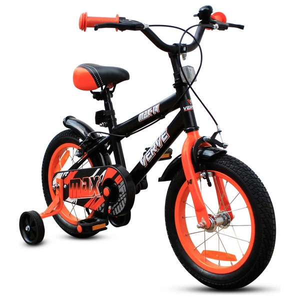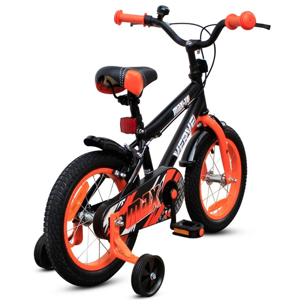 Tartalom: 14 colos Verve Max gyermekkerékpár pótkerekekkel, fekete/narancssárga