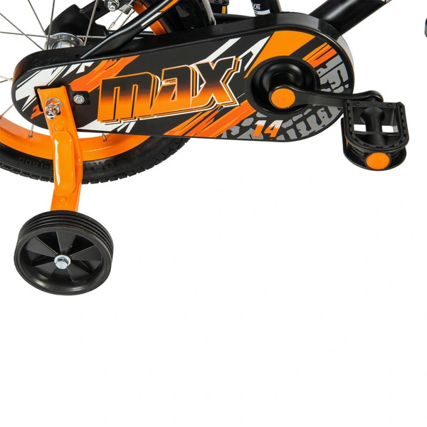 14 colos Verve Max gyermekkerékpár pótkerekekkel, fekete/narancssárga