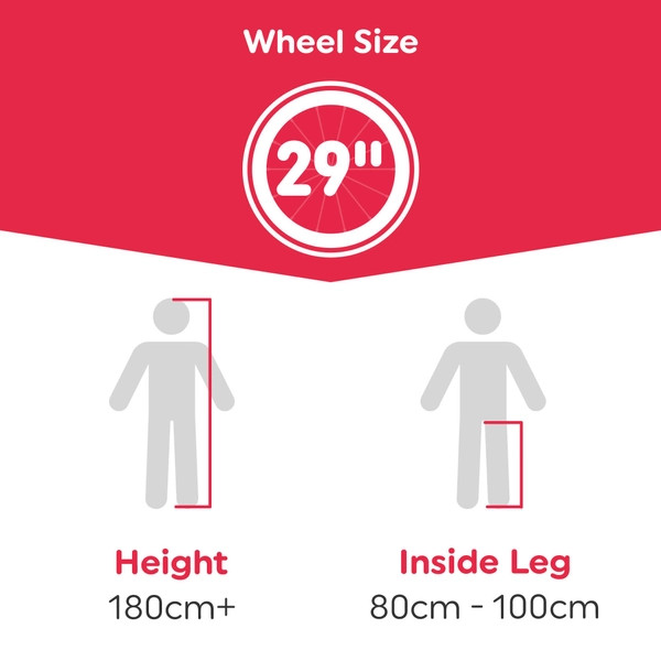 A dupla falú alumínium felnik pneumatikus gumiabroncsokkal tartósságot és stabilitást biztosítanak. Kitámasztó, csengő és sárvédők is tartoznak hozzá. Az első és hátsó fényvisszaverők növelik a láthatóságot a forgalomban. Ez a 29 colos mountain bike körülbelül 12 éves kortól alkalmas, körülbelül 80-100 cm belső combhosszúságú gyermekek számára.