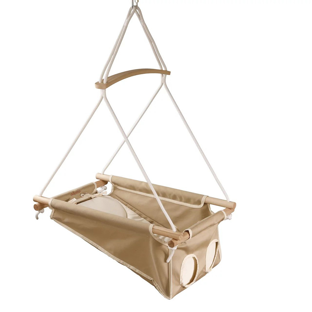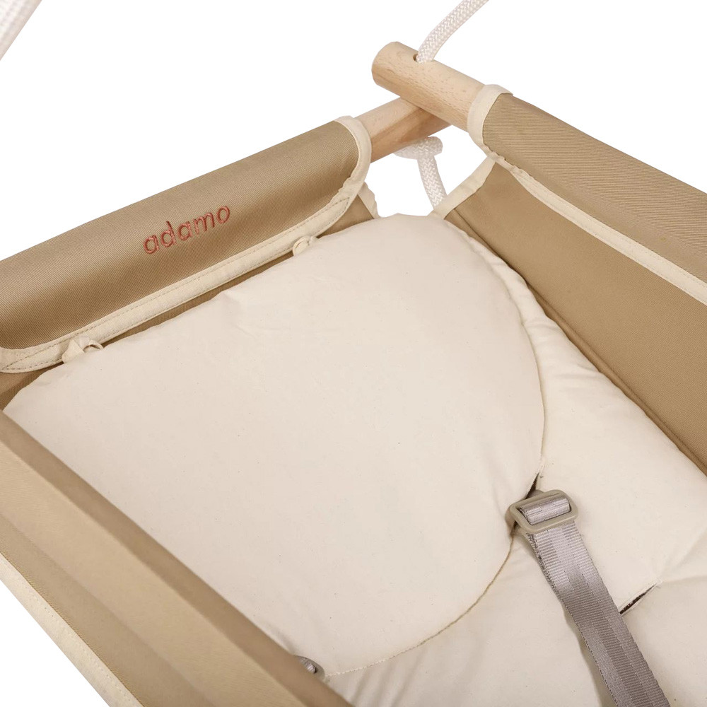 A hinta tartozékai:5 pontos biztonsági övvel (a vállpánt rész központi csatról való lehúzásával 3 pontossá alakítható a már ülő gyermekek számára) ellátva speciális kialakítású és anyagú külső hinta huzat, amely a Titok kulcsabababarát, kezeletlen keményfa rudazat,a baba kezecskéknek megfelelő vastagságú kötélzet, amelyet keresztrúddal, és egy speciális, magasság állításra alkalmas alkatrésszel szereltünk össze.100% pamut, ÖKO-TEX minőségű párna, amelynél minden esetben figyelembe vettük, hogy a megfelelő mikroklímát biztosítsa kis használójának.FONTOS! A rugót nem tartalmazza a doboz, válaszd ki a gyermeked súlyának megfelelőt és azt is helyezd a kosaradba!Az Adamo hinta, a rég elfeledett bölcső és az egy ponton függesztett hinta ötvözete. Újszülött kortól, egészen a baba 3 éves koráig tudjátok használni! Egy ponton, egy rugóval ellátott kötélzeten függeszkedik, így minden irányú mozgást tud produkálni. Használható bölcsőhintaként, ülőhintaként, rugós hintaként. Egyszerűen megunhatatlan!Fekvő felülete puha, nem merevített. Speciális kialakításának és anyagösszetételének köszönhetően, biztonságosan leutánozza azokat a mozgásokat – és így ingereket is – amelyek az anyaméhben is érik a babát. Ez minden csecsemő esetében pozitív hatással bír az idegrendszer érésére, fejlődésére. Emellett az egészséges csecsemő számára egy megnyugtató, biztonságot adó emléket is idéz.Sérült és koraszülött babák esetében, azért felbecsülhetetlen jelentőségű, mert kiegészíti, és sokkal hatékonyabbá teszi a fejlesztést – a változatos egyensúlyi ingerek, amelyeket ez a hinta remekül biztosít, minden valamirevaló fejlesztés, terápia alapját jelentik. Az édesanyák körében a hinta sikere abban rejlik, hogy ez a fajta inger, nem csak fejleszti a gyermekeket, hanem a nehezebb napokon, mint a pocakfájás, fogzás, frontok… nagyon könnyen megnyugtatja, és el is altatja a babákat. Az Adamo hintát, a gyermekekre tett pozitív hatásai miatt, ma már több mozgásfejlesztő, konduktor és fejlesztőközpont is használja az állapotfelméréseik során, és jó szívvel ajánlja az édesanyáknak otthoni használatra is. Miközben gyermeked önfeledten játszik a hintában, észrevétlenül fejleszti, a szem-kéz-láb koordinációját és az egyensúly érzékét is. Ezek a fajta ingerek és fejlesztések hatással lesznek a későbbi beszéd fejlődésre, írás- olvasás tanulásra egyaránt.Hintáink a kor elvárásainak, és az előírásoknak megfelelően folyamatos fejlesztéseken esnek át. Próbáljuk megtartani az egyensúlyt a régi el nem feledett tudás, a sok éves tapasztalat, valamint az új kutatások és a technikai fejlődés között. Termékeink magas minőségét a visszajelzéseitek is igazolják, hiszen akár 3-4 babagenerációt is kiszolgálnak. Az Adamo jó hírét értékállóságának is köszönheti.