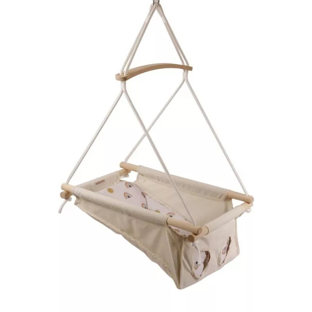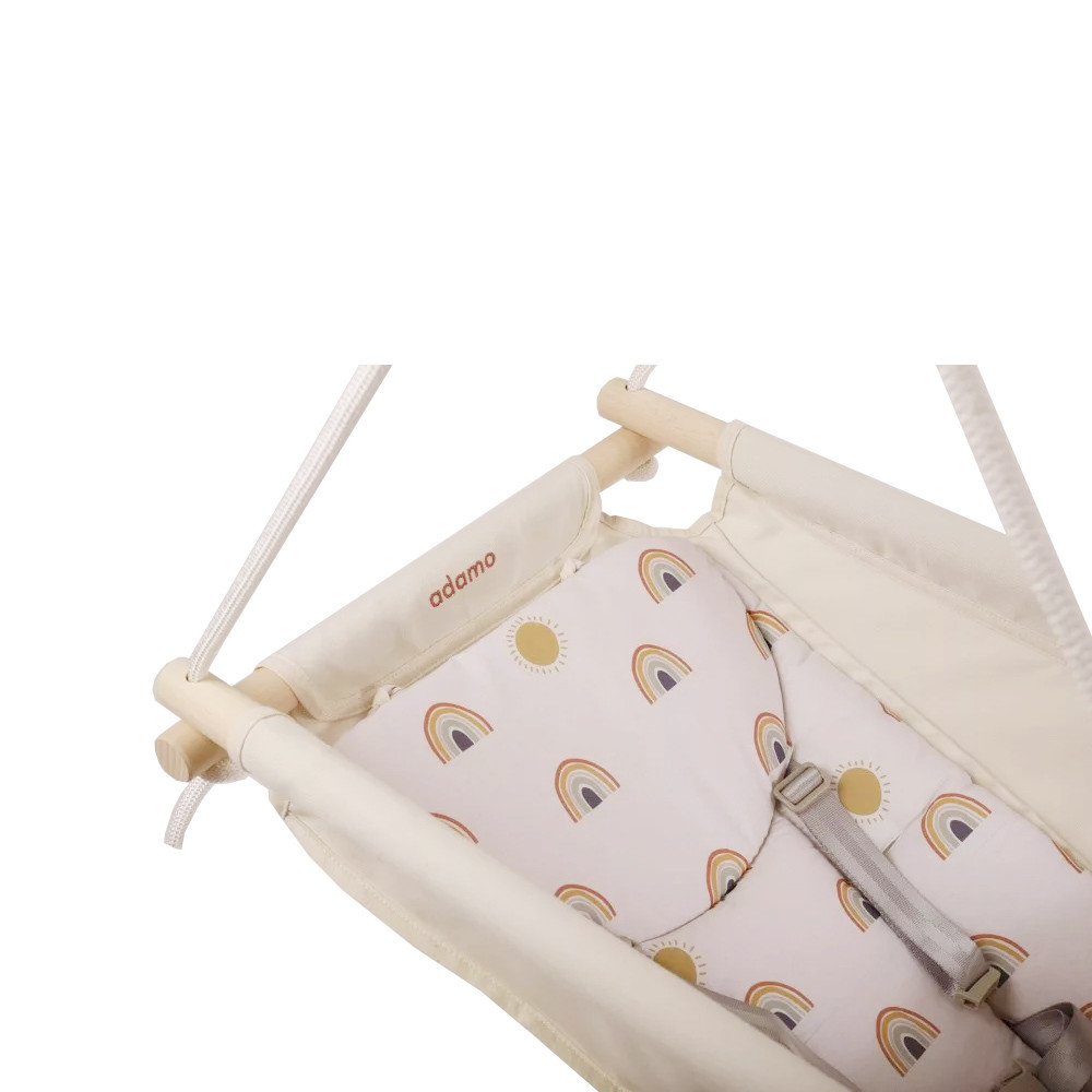 A hinta tartozékai:5 pontos biztonsági övvel (a vállpánt rész központi csatról való lehúzásával 3 pontossá alakítható a már ülő gyermekek számára) ellátva speciális kialakítású és anyagú külső hinta huzat, amely a Titok kulcsabababarát, kezeletlen keményfa rudazat,a baba kezecskéknek megfelelő vastagságú kötélzet, amelyet keresztrúddal, és egy speciális, magasság állításra alkalmas alkatrésszel szereltünk össze.100% pamut, ÖKO-TEX minőségű párna, amelynél minden esetben figyelembe vettük, hogy a megfelelő mikroklímát biztosítsa kis használójának.FONTOS! A rugót nem tartalmazza a doboz, válaszd ki a gyermeked súlyának megfelelőt és azt is helyezd a kosaradba!Az Adamo hinta, a rég elfeledett bölcső és az egy ponton függesztett hinta ötvözete. Újszülött kortól, egészen a baba 3 éves koráig tudjátok használni! Egy ponton, egy rugóval ellátott kötélzeten függeszkedik, így minden irányú mozgást tud produkálni. Használható bölcsőhintaként, ülőhintaként, rugós hintaként. Egyszerűen megunhatatlan!Fekvő felülete puha, nem merevített. Speciális kialakításának és anyagösszetételének köszönhetően, biztonságosan leutánozza azokat a mozgásokat – és így ingereket is – amelyek az anyaméhben is érik a babát. Ez minden csecsemő esetében pozitív hatással bír az idegrendszer érésére, fejlődésére. Emellett az egészséges csecsemő számára egy megnyugtató, biztonságot adó emléket is idéz.Sérült és koraszülött babák esetében, azért felbecsülhetetlen jelentőségű, mert kiegészíti, és sokkal hatékonyabbá teszi a fejlesztést – a változatos egyensúlyi ingerek, amelyeket ez a hinta remekül biztosít, minden valamirevaló fejlesztés, terápia alapját jelentik. Az édesanyák körében a hinta sikere abban rejlik, hogy ez a fajta inger, nem csak fejleszti a gyermekeket, hanem a nehezebb napokon, mint a pocakfájás, fogzás, frontok… nagyon könnyen megnyugtatja, és el is altatja a babákat. Az Adamo hintát, a gyermekekre tett pozitív hatásai miatt, ma már több mozgásfejlesztő, konduktor és fejlesztőközpont is használja az állapotfelméréseik során, és jó szívvel ajánlja az édesanyáknak otthoni használatra is. Miközben gyermeked önfeledten játszik a hintában, észrevétlenül fejleszti, a szem-kéz-láb koordinációját és az egyensúly érzékét is. Ezek a fajta ingerek és fejlesztések hatással lesznek a későbbi beszéd fejlődésre, írás- olvasás tanulásra egyaránt.Hintáink a kor elvárásainak, és az előírásoknak megfelelően folyamatos fejlesztéseken esnek át. Próbáljuk megtartani az egyensúlyt a régi el nem feledett tudás, a sok éves tapasztalat, valamint az új kutatások és a technikai fejlődés között. Termékeink magas minőségét a visszajelzéseitek is igazolják, hiszen akár 3-4 babagenerációt is kiszolgálnak. Az Adamo jó hírét értékállóságának is köszönheti.