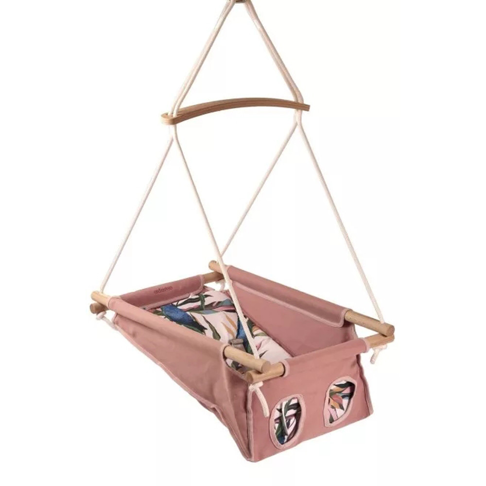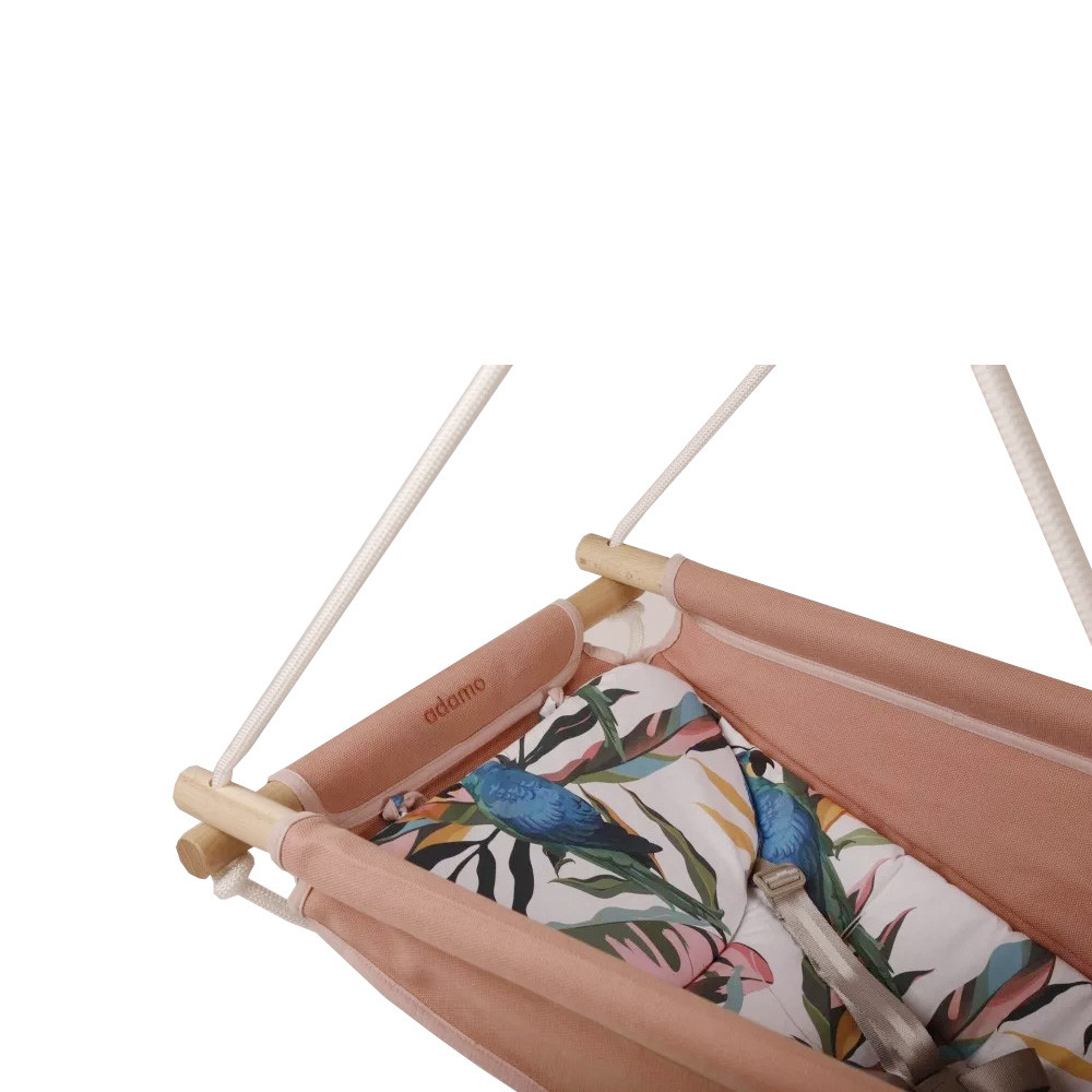 A hinta tartozékai:5 pontos biztonsági övvel (a vállpánt rész központi csatról való lehúzásával 3 pontossá alakítható a már ülő gyermekek számára) ellátva speciális kialakítású és anyagú külső hinta huzat, amely a Titok kulcsabababarát, kezeletlen keményfa rudazat,a baba kezecskéknek megfelelő vastagságú kötélzet, amelyet keresztrúddal, és egy speciális, magasság állításra alkalmas alkatrésszel szereltünk össze.100% pamut, ÖKO-TEX minőségű párna, amelynél minden esetben figyelembe vettük, hogy a megfelelő mikroklímát biztosítsa kis használójának.FONTOS! A rugót nem tartalmazza a doboz, válaszd ki a gyermeked súlyának megfelelőt és azt is helyezd a kosaradba!Az Adamo hinta, a rég elfeledett bölcső és az egy ponton függesztett hinta ötvözete. Újszülött kortól, egészen a baba 3 éves koráig tudjátok használni! Egy ponton, egy rugóval ellátott kötélzeten függeszkedik, így minden irányú mozgást tud produkálni. Használható bölcsőhintaként, ülőhintaként, rugós hintaként. Egyszerűen megunhatatlan!Fekvő felülete puha, nem merevített. Speciális kialakításának és anyagösszetételének köszönhetően, biztonságosan leutánozza azokat a mozgásokat – és így ingereket is – amelyek az anyaméhben is érik a babát. Ez minden csecsemő esetében pozitív hatással bír az idegrendszer érésére, fejlődésére. Emellett az egészséges csecsemő számára egy megnyugtató, biztonságot adó emléket is idéz.Sérült és koraszülött babák esetében, azért felbecsülhetetlen jelentőségű, mert kiegészíti, és sokkal hatékonyabbá teszi a fejlesztést – a változatos egyensúlyi ingerek, amelyeket ez a hinta remekül biztosít, minden valamirevaló fejlesztés, terápia alapját jelentik. Az édesanyák körében a hinta sikere abban rejlik, hogy ez a fajta inger, nem csak fejleszti a gyermekeket, hanem a nehezebb napokon, mint a pocakfájás, fogzás, frontok… nagyon könnyen megnyugtatja, és el is altatja a babákat. Az Adamo hintát, a gyermekekre tett pozitív hatásai miatt, ma már több mozgásfejlesztő, konduktor és fejlesztőközpont is használja az állapotfelméréseik során, és jó szívvel ajánlja az édesanyáknak otthoni használatra is. Miközben gyermeked önfeledten játszik a hintában, észrevétlenül fejleszti, a szem-kéz-láb koordinációját és az egyensúly érzékét is. Ezek a fajta ingerek és fejlesztések hatással lesznek a későbbi beszéd fejlődésre, írás- olvasás tanulásra egyaránt.Hintáink a kor elvárásainak, és az előírásoknak megfelelően folyamatos fejlesztéseken esnek át. Próbáljuk megtartani az egyensúlyt a régi el nem feledett tudás, a sok éves tapasztalat, valamint az új kutatások és a technikai fejlődés között. Termékeink magas minőségét a visszajelzéseitek is igazolják, hiszen akár 3-4 babagenerációt is kiszolgálnak. Az Adamo jó hírét értékállóságának is köszönheti.