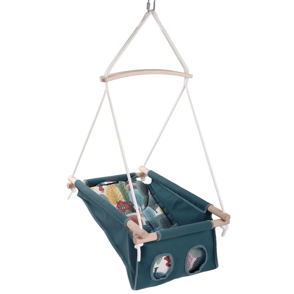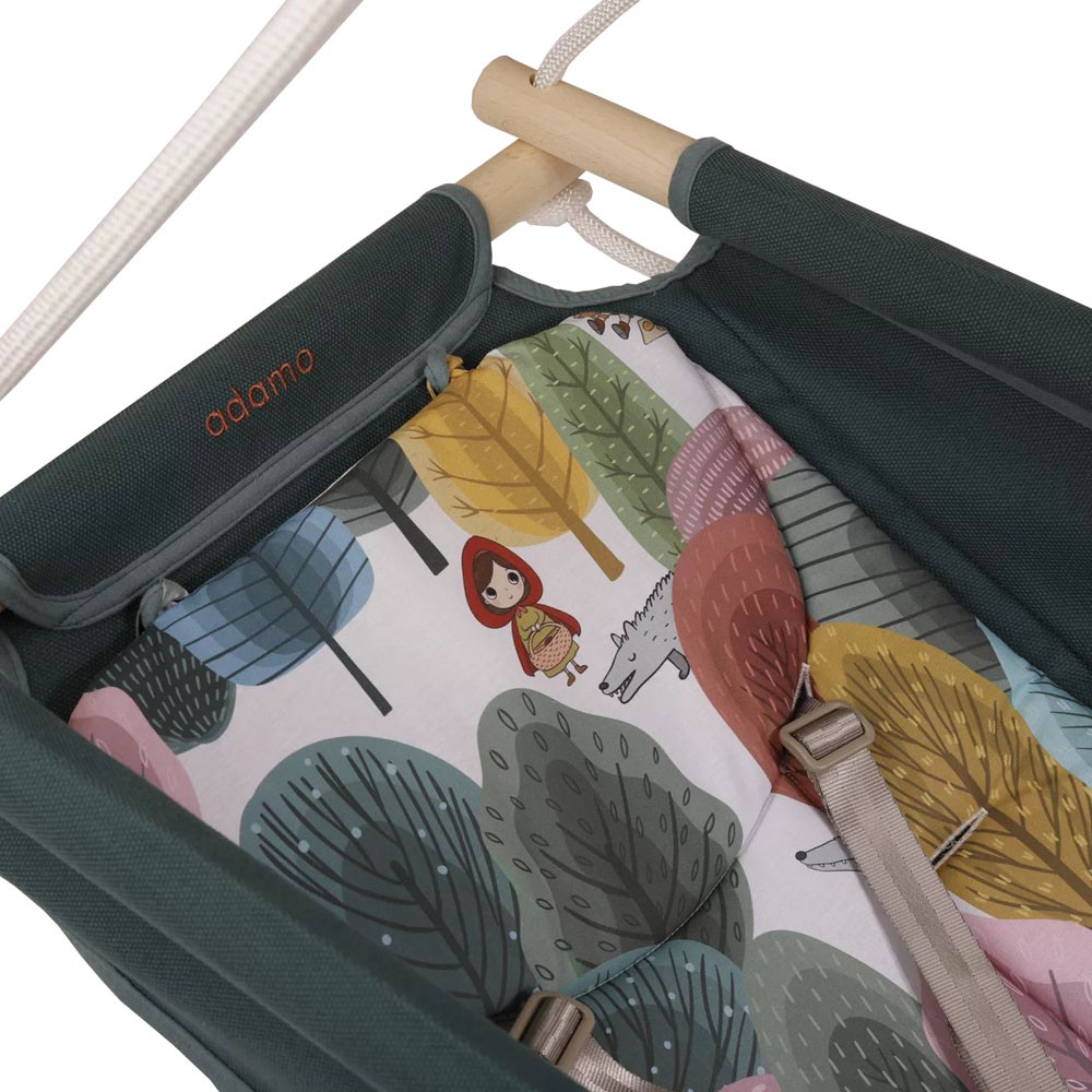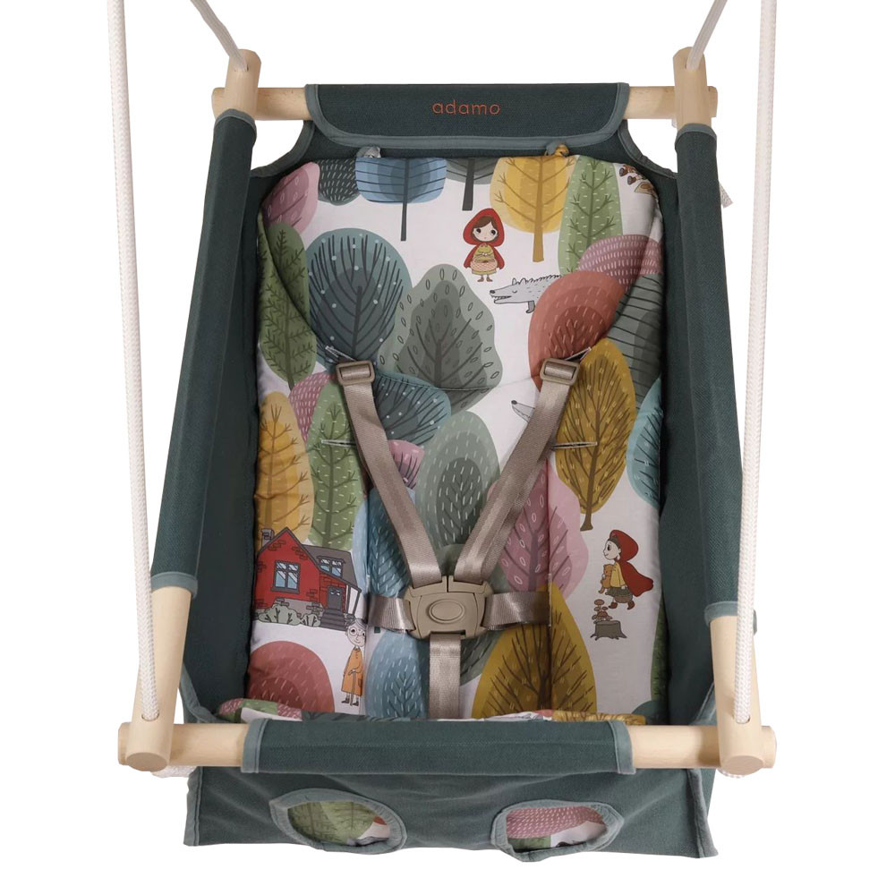 A hinta tartozékai:5 pontos biztonsági övvel (a vállpánt rész központi csatról való lehúzásával 3 pontossá alakítható a már ülő gyermekek számára) ellátva speciális kialakítású és anyagú külső hinta huzat, amely a Titok kulcsabababarát, kezeletlen keményfa rudazat,a baba kezecskéknek megfelelő vastagságú kötélzet, amelyet keresztrúddal, és egy speciális, magasság állításra alkalmas alkatrésszel szereltünk össze.100% pamut, ÖKO-TEX minőségű párna, amelynél minden esetben figyelembe vettük, hogy a megfelelő mikroklímát biztosítsa kis használójának.FONTOS! A rugót nem tartalmazza a doboz, válaszd ki a gyermeked súlyának megfelelőt és azt is helyezd a kosaradba!Az Adamo hinta, a rég elfeledett bölcső és az egy ponton függesztett hinta ötvözete. Újszülött kortól, egészen a baba 3 éves koráig tudjátok használni! Egy ponton, egy rugóval ellátott kötélzeten függeszkedik, így minden irányú mozgást tud produkálni. Használható bölcsőhintaként, ülőhintaként, rugós hintaként. Egyszerűen megunhatatlan!Fekvő felülete puha, nem merevített. Speciális kialakításának és anyagösszetételének köszönhetően, biztonságosan leutánozza azokat a mozgásokat – és így ingereket is – amelyek az anyaméhben is érik a babát. Ez minden csecsemő esetében pozitív hatással bír az idegrendszer érésére, fejlődésére. Emellett az egészséges csecsemő számára egy megnyugtató, biztonságot adó emléket is idéz.Sérült és koraszülött babák esetében, azért felbecsülhetetlen jelentőségű, mert kiegészíti, és sokkal hatékonyabbá teszi a fejlesztést – a változatos egyensúlyi ingerek, amelyeket ez a hinta remekül biztosít, minden valamirevaló fejlesztés, terápia alapját jelentik. Az édesanyák körében a hinta sikere abban rejlik, hogy ez a fajta inger, nem csak fejleszti a gyermekeket, hanem a nehezebb napokon, mint a pocakfájás, fogzás, frontok… nagyon könnyen megnyugtatja, és el is altatja a babákat. Az Adamo hintát, a gyermekekre tett pozitív hatásai miatt, ma már több mozgásfejlesztő, konduktor és fejlesztőközpont is használja az állapotfelméréseik során, és jó szívvel ajánlja az édesanyáknak otthoni használatra is. Miközben gyermeked önfeledten játszik a hintában, észrevétlenül fejleszti, a szem-kéz-láb koordinációját és az egyensúly érzékét is. Ezek a fajta ingerek és fejlesztések hatással lesznek a későbbi beszéd fejlődésre, írás- olvasás tanulásra egyaránt.Hintáink a kor elvárásainak, és az előírásoknak megfelelően folyamatos fejlesztéseken esnek át. Próbáljuk megtartani az egyensúlyt a régi el nem feledett tudás, a sok éves tapasztalat, valamint az új kutatások és a technikai fejlődés között. Termékeink magas minőségét a visszajelzéseitek is igazolják, hiszen akár 3-4 babagenerációt is kiszolgálnak. Az Adamo jó hírét értékállóságának is köszönheti.