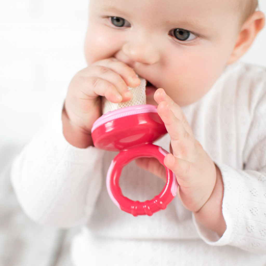 Gyermek pépesítõcumi Akuku. A pépesítõcumi hálós része textilbõl készült, sûrû szövésû, így épp csak akkora darabokban engedi át az ételt, hogy az biztonságos legyen a kicsi számára. Feltölthetõ friss gyümölcsökkel, sajttal, kekszekkel,zöldségekkel. Mûanyag fogantyúval rendelkezik. 6-hónapos kortól ajánlott. Nem tartalmaz BPA-t. Mikrohullámú sütõbe és mosogatógépbe nem helyezhetõ. A csomagolás 1 darabot tartalmaz.