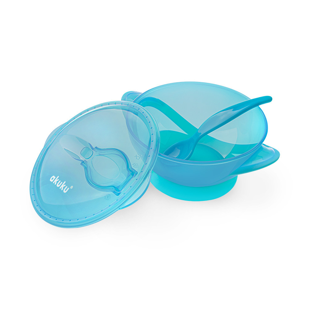 Akuku etetőtál tetővel és kanállal 300 ml kék