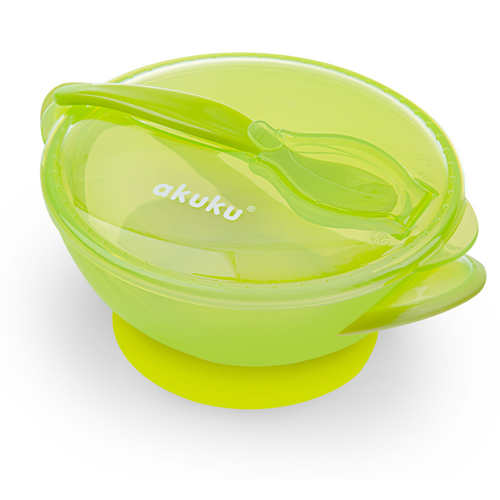 Akuku etetőtál tetővel és kanállal 300 ml zöld