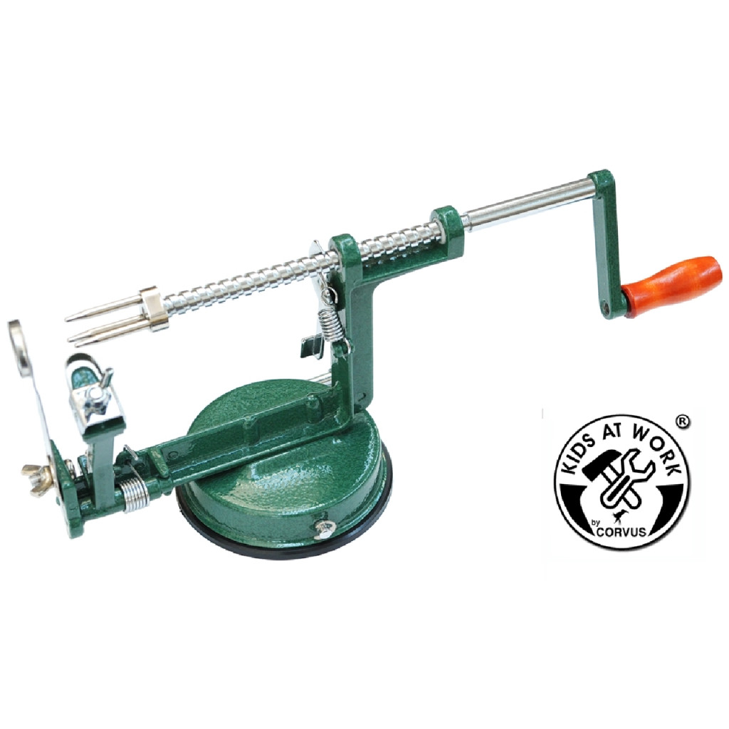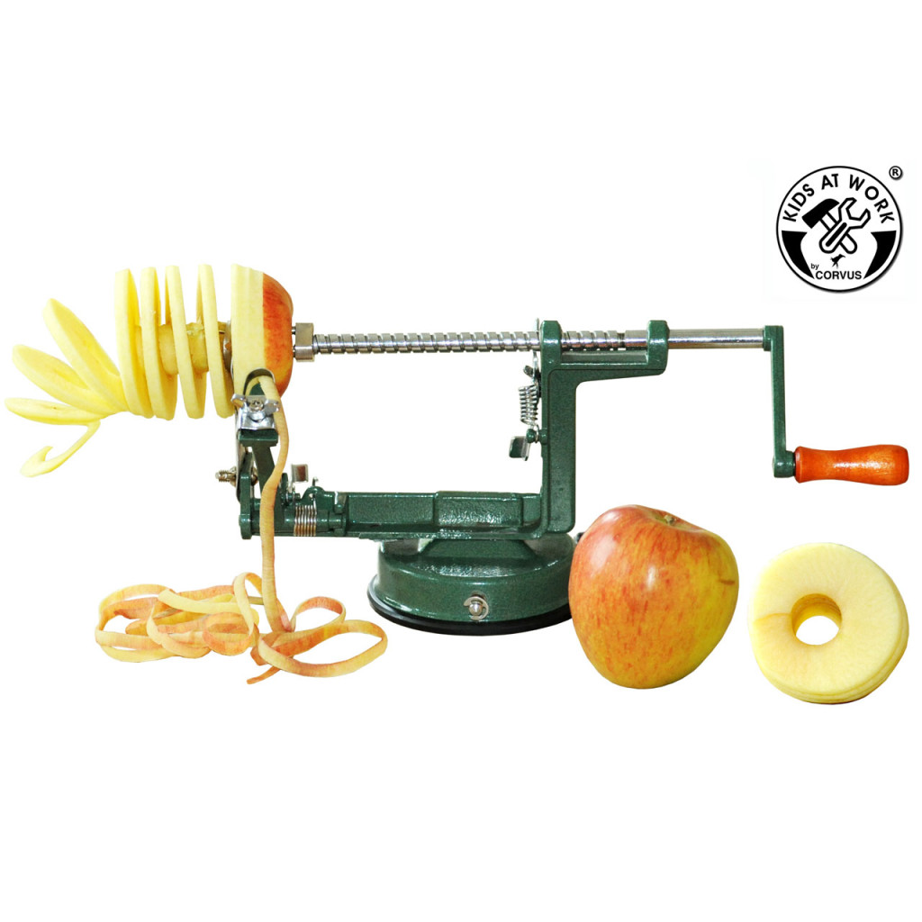 A gépet egy vákumos talppal lehet az asztallapra rögzíteni, és kézi erővel meghajtva készítheted el az almaszallagokat. Hogy egy alma elfogyasztása újra és újra öröm lehessen! Zománcozott fém talp és váz, rozsdamentes acél és krómozott acél alkatrészek alkotják.