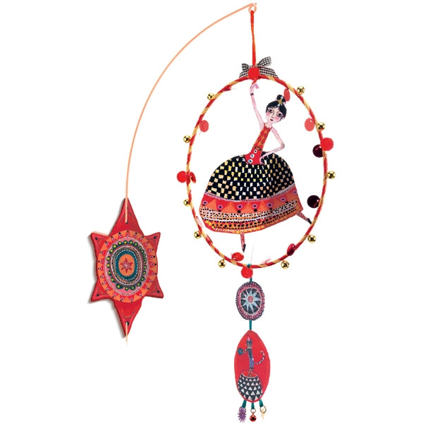 A Djeco ajánlja dekorációs termékei között ezt a kiságy fölé függeszthető táncosnőfigurát táncoltató szélmobilt.