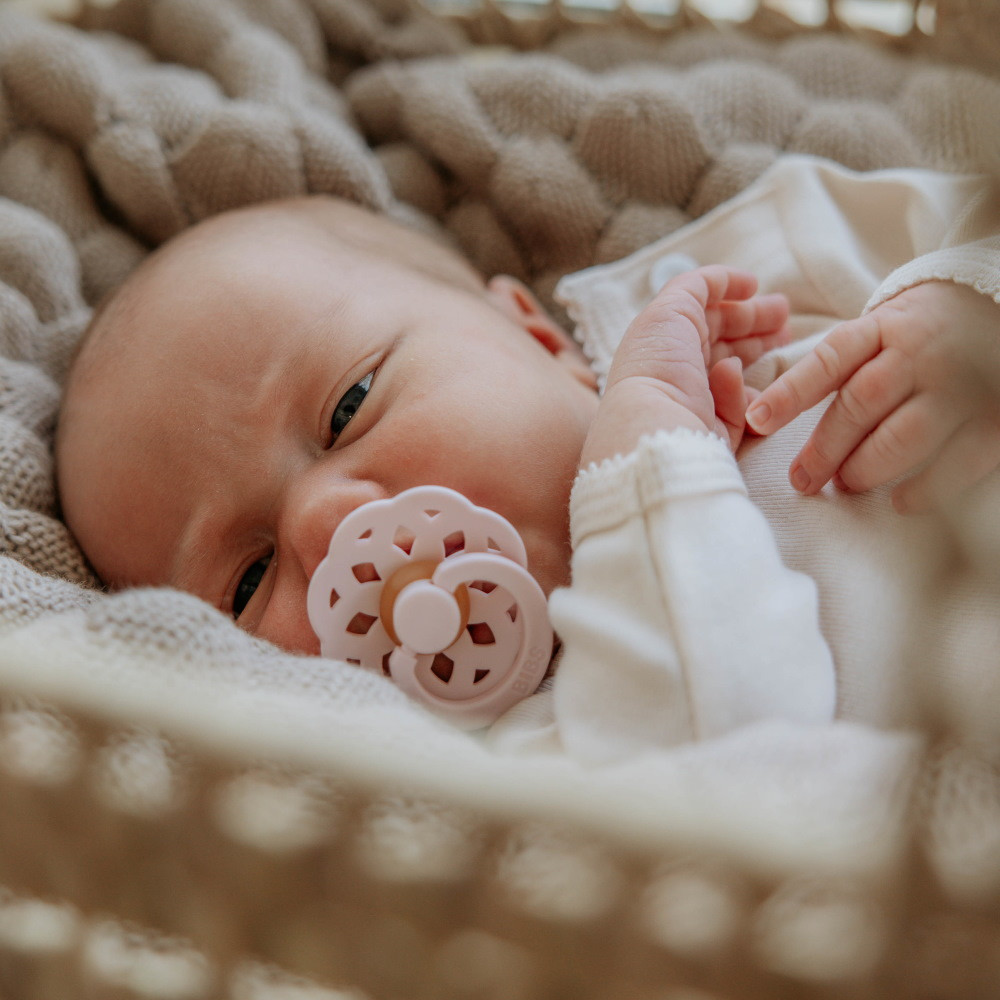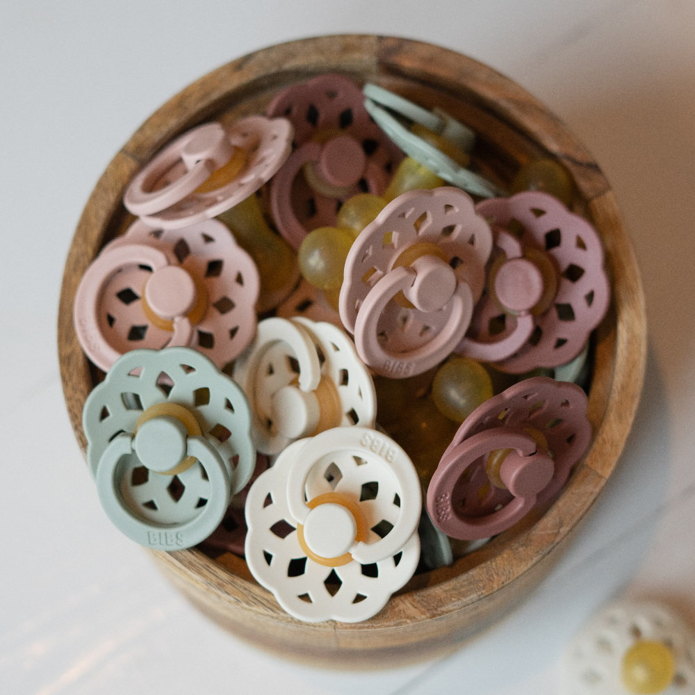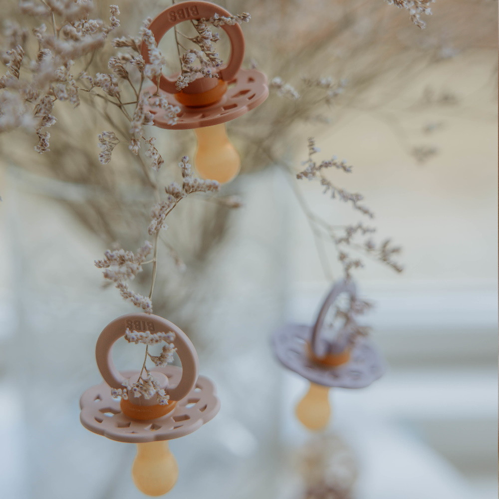 BIBS játszócumi - Boheme natúr kaucsuk 0-6 hó cseresznyevirág és hamvas lila 2 db