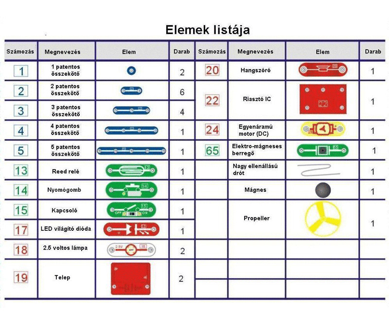 A készlet az iskolában és otthon is egyénileg is használható. Az összes darab patenttal kapcsolható össze az alaplapon, így egy áramkör átlagosan 2 perc alatt állítható össze. A kézikönyvben minden áramkör le van rajzolva, és a színes, számmal ellátott elemeknek köszönhetően még a fiatalabb gyerekek számára is könnyen követhető.