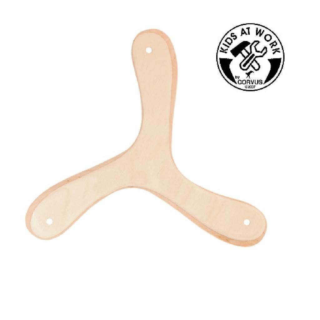 Több fajtája és formája ismert, ebben az esetben egy 3 szárnyú, visszatérő bumerángot készíthetsz magadnak. Ha ügyesen készíted el, és jól használod, akkor miután eldobod vissza fog repülni Hozzád. Ebben a csomagban egy rétegelt nyírfa lapot találsz amiből a csomagolásban lévő sablon segítségével kivághatod a buneráng formát. Reszelő segítségével a szárnyak bizonyos részeit a megfelelő módon szükséges lekerekíteni, úgy nevezett "szárny profilt" kialakítani. Az elkészítéshez szükséged lesz lombfűrészre, reszelőre, csiszolópapírra.