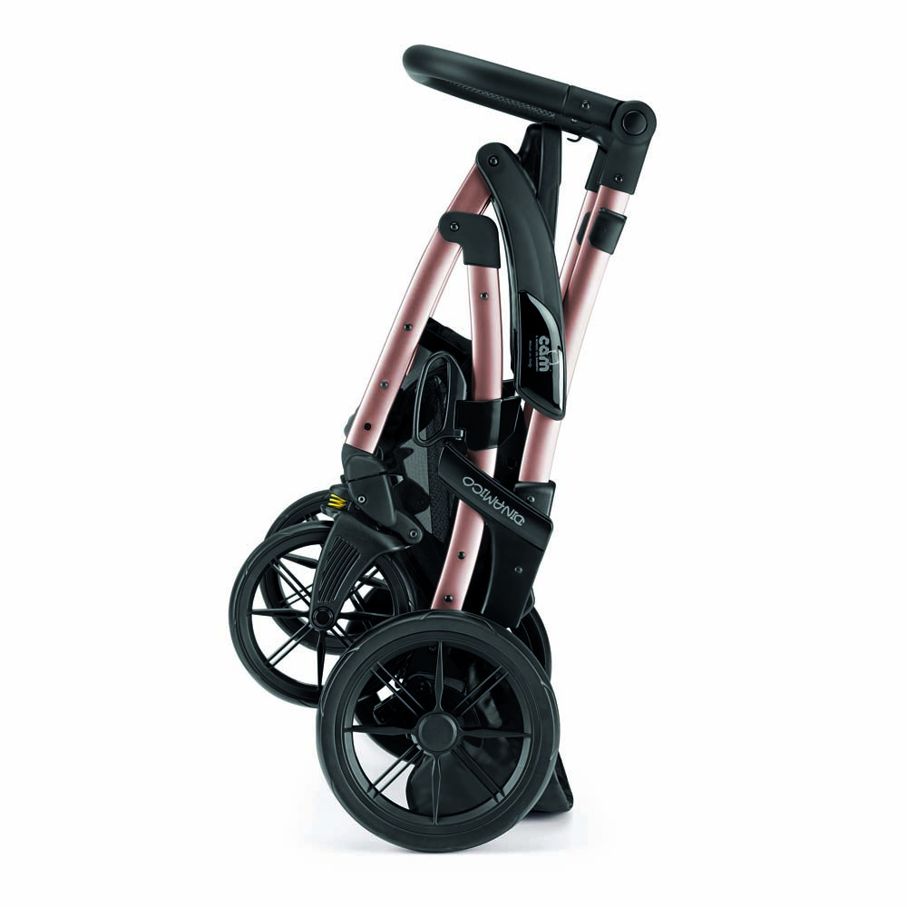 Ezeket a Dinamico Smart babakocsikat defektmentes, nem felfújható kerekekkel szállítjuk, mely a mózeskosárral szerelt képen látható.