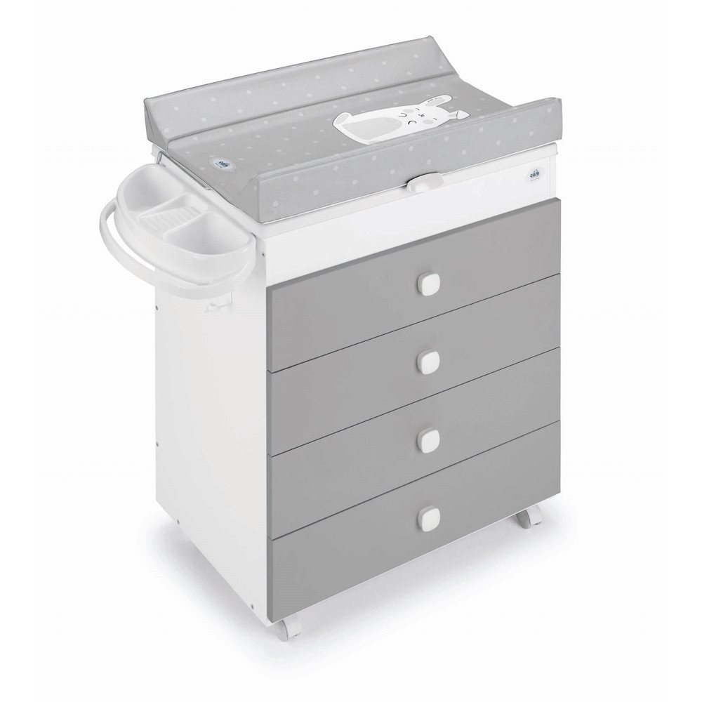 Többfunkciós fürdetõ és pelenkázó szekrény fiókokkalOlaszországban készült- újszülött kortól használható- egy kézzel is könnyen felhajtható merev aljú, puha pelenkázólap leesésgátló oldalakkal- része a babakád két anatómiailag formázott üléssel: egyik ülés döntött, a 0-6 hónapos babák fektetve fürdetéséhez és a másik ülés karfás, a 6-12 hónapos babák ültetve fürdetéséhez- szappan-, szivacs- és törölkõzõtartók– fürdõvíz-leeresztõ csõvel és dugóval– 4 görgõvel, melyekbõl 2 fékezhetõ– fürdetõszekrény formájában 3 teljes értékû fiókkal– normál, 4 fiókos komóddá alakítható a tetejére tehetõ fa lappal- a fiókok fém sínekben siklanakMaximum terhelhetõsége: 11 kgMéretei: komód káddal és pelenkázólappal: 93x47x100,5 cm komód: 76x47x89 cmSúlya: 44kgBiztonság: - Európai szabvány: EN12221-1/2- Korosztály:Ideális kisbabáknak a 11 kg-os súly eléréséig- Oldalsó, elsõ és hátsó stabilitási teszten ment át, elkerülendõ azt a veszélyt, hogy a termék felboruljon használat közben- Nincs benne mérgezõ anyag (EN71 szabvány) és ftalátmentes anyagokból készült (2005/84/CE irányelv)