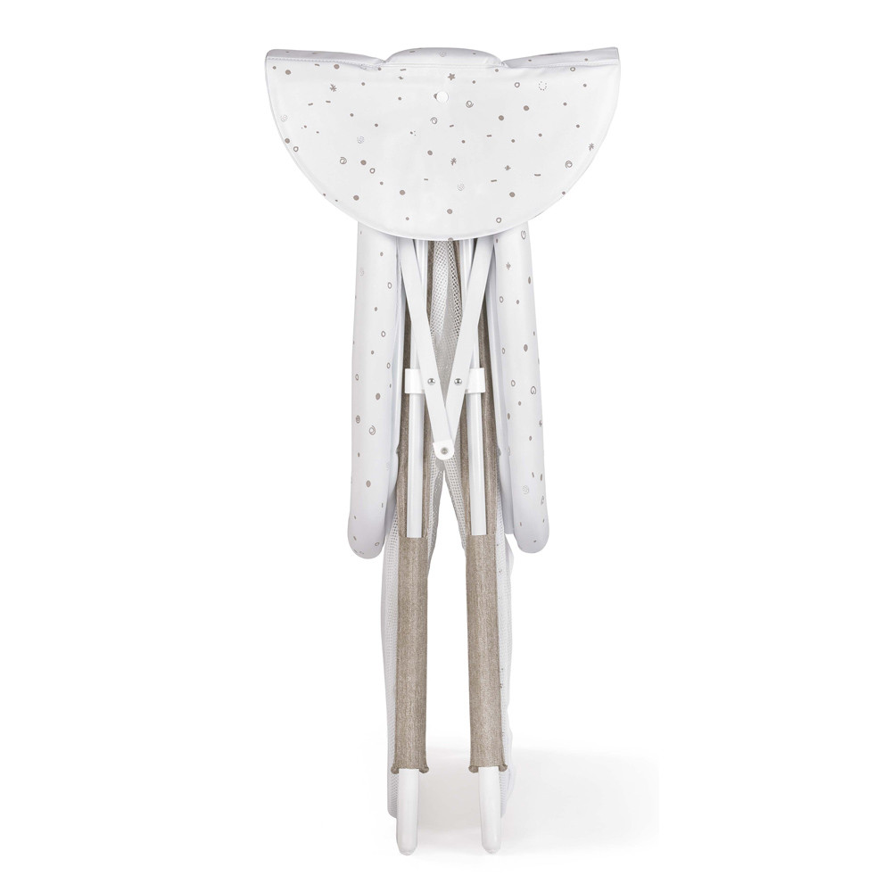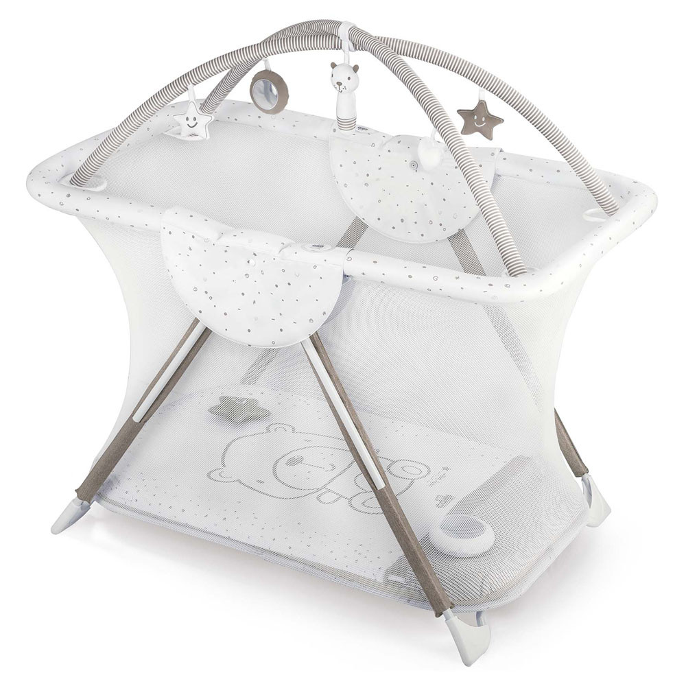 Nagy alapterületû, négyzet alapú járóka, vastagon párnázott padlóval és felsõ peremmel. Négy erõs kapaszkodóval látták el, melyek segítenek a babának a felállásban. A járóka a fenéklemez felhúzásával, egy mozdulattal laposra csukható.