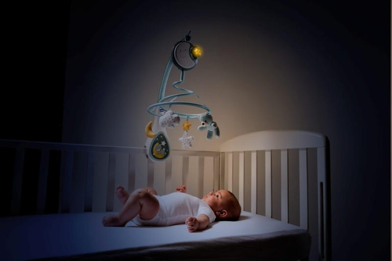 CHICCO Forgó a kiságy fölé és függő játék 3 az 1-ben Next2Dreams kék 0m+