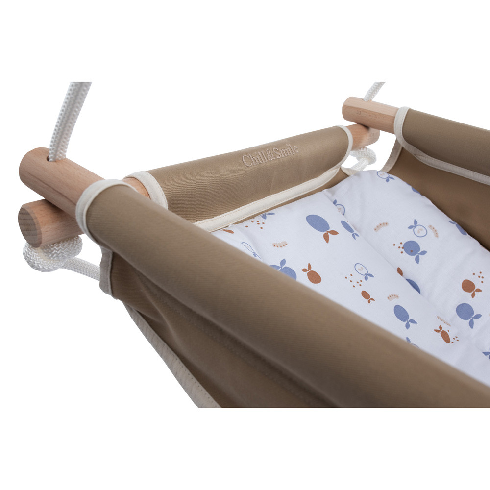 Chill&Smile klasszikus babahinta – Természetes Kényelem és Biztonság A hintázás nemcsak játék, hanem a fejlődés része is. A mozgás koordinációja, az egyensúlyérzék ésa térbeli tájékozódás mind javulnak, miközben a gyerekek örömmel hintáznak. A szülők számára pedig a hintázás lehetőséget ad arra, hogy egy pillanatra megálljanak, és élvezzék a gyermekükboldogságát. Minden egyes hinta gondosan lett megtervezve, hogy a baba és a szülők számára is örömteli és pihentető élményt nyújtson. Az otthon melege, a természetesség és a szeretet mindmegjelennek ezekben a hintákban, amelyek acsaládi pillanatok különleges részévé válnak.A hinták nevei szorosan kapcsolódnak a szülői szeretethez és gyengédséghez. Minden egyes név egy becézés, amit sok szülő használ gyermeke számára. Ezek az elnevezések - mint Virágszál, Kincsem, Bogyó, Csillagom és Manó - azt a szeretetet és törődést tükrözik, amit a szülők éreznek gyermekeik iránt. A hinták is ezt az érzést hivatottak megtestesíteni: kényelmet, biztonságotés a szeretet ölelését nyújtják a legkisebbek számára.A klasszikus babahinta a tökéletes választás azoknak a szülőknek, akik természetes anyagokból készült, biztonságos és kényelmes hintát keresnek gyermekük számára. Ideális újszülött kortól akár 3 éves korig, segít megnyugtatni és szórakoztatni a babát. Főbb jellemzők: 1.Kényelmes és ergonomikus kialakítás A babahinta puha, légáteresztő pamutból készült, amely biztosítja a baba kényelmét és támogatja az egészséges testtartást. A hintázó mozgás nyugtató hatású, segíti az altatást és hozzájárul a baba egyensúlyérzékének fejlődéséhez. 2.Biztonság mindenek felett A biztonsági öv gondoskodik arról, hogy a baba biztonságosan helyezkedjen el a hintában. Az erős, strapabíró fa keret és a megbízható rögzítési rendszer stabil használatot garantál. 3.Könnyû használat és hordozhatóság A babahinta egyszerûen felszerelhető beltéren és kültéren egyaránt. Kompakt méretének és könnyû szerkezetének köszönhetően könnyen mozgatható, így bárhová magaddal viheted, hogy gyermeked mindig otthon érezhesse magát. 4.Természetes anyagok A természetes pamut és fenntartható forrásból származó fa alkatrészek biztosítják, hogy a babahinta környezetbarát és bababarát legyen. Mûszaki adatok: - Ajánlott életkor: 0-3 év - Terhelhetőség: max. 15 kg - Anyagok: 100% pamut huzat, természetes fa - Tartozékok: biztonsági öv, állítható magasságú kötélzet, hintapárnaRendeld meg most, és ajándékozd meg gyermekedet a hintázás örömével!Klasszikus Babahinta – egyszerûség, amely sosem megy ki a divatból.