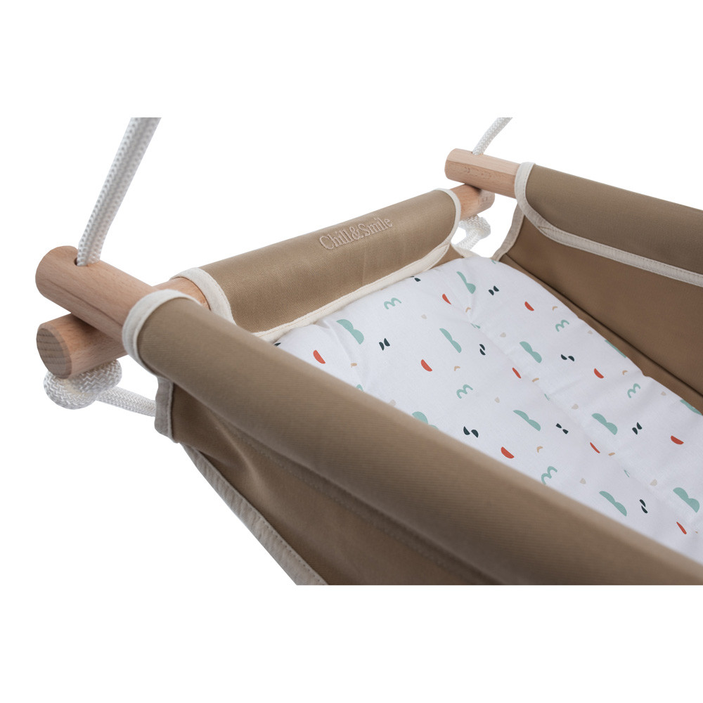 Chill&Smile klasszikus babahinta – Természetes Kényelem és Biztonság A hintázás nemcsak játék, hanem a fejlődés része is. A mozgás koordinációja, az egyensúlyérzék ésa térbeli tájékozódás mind javulnak, miközben a gyerekek örömmel hintáznak. A szülők számára pedig a hintázás lehetőséget ad arra, hogy egy pillanatra megálljanak, és élvezzék a gyermekükboldogságát. Minden egyes hinta gondosan lett megtervezve, hogy a baba és a szülők számára is örömteli és pihentető élményt nyújtson. Az otthon melege, a természetesség és a szeretet mindmegjelennek ezekben a hintákban, amelyek acsaládi pillanatok különleges részévé válnak.A hinták nevei szorosan kapcsolódnak a szülői szeretethez és gyengédséghez. Minden egyes név egy becézés, amit sok szülő használ gyermeke számára. Ezek az elnevezések - mint Virágszál, Kincsem, Bogyó, Csillagom és Manó - azt a szeretetet és törődést tükrözik, amit a szülők éreznek gyermekeik iránt. A hinták is ezt az érzést hivatottak megtestesíteni: kényelmet, biztonságotés a szeretet ölelését nyújtják a legkisebbek számára.A klasszikus babahinta a tökéletes választás azoknak a szülőknek, akik természetes anyagokból készült, biztonságos és kényelmes hintát keresnek gyermekük számára. Ideális újszülött kortól akár 3 éves korig, segít megnyugtatni és szórakoztatni a babát. Főbb jellemzők: 1.Kényelmes és ergonomikus kialakítás A babahinta puha, légáteresztő pamutból készült, amely biztosítja a baba kényelmét és támogatja az egészséges testtartást. A hintázó mozgás nyugtató hatású, segíti az altatást és hozzájárul a baba egyensúlyérzékének fejlődéséhez. 2.Biztonság mindenek felett A biztonsági öv gondoskodik arról, hogy a baba biztonságosan helyezkedjen el a hintában. Az erős, strapabíró fa keret és a megbízható rögzítési rendszer stabil használatot garantál. 3.Könnyû használat és hordozhatóság A babahinta egyszerûen felszerelhető beltéren és kültéren egyaránt. Kompakt méretének és könnyû szerkezetének köszönhetően könnyen mozgatható, így bárhová magaddal viheted, hogy gyermeked mindig otthon érezhesse magát. 4.Természetes anyagok A természetes pamut és fenntartható forrásból származó fa alkatrészek biztosítják, hogy a babahinta környezetbarát és bababarát legyen. Mûszaki adatok: - Ajánlott életkor: 0-3 év - Terhelhetőség: max. 15 kg - Anyagok: 100% pamut huzat, természetes fa - Tartozékok: biztonsági öv, állítható magasságú kötélzet, hintapárnaRendeld meg most, és ajándékozd meg gyermekedet a hintázás örömével!Klasszikus Babahinta – egyszerûség, amely sosem megy ki a divatból.