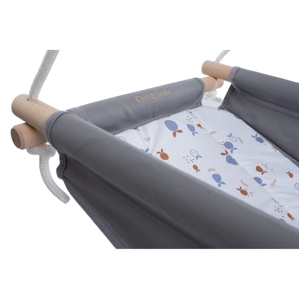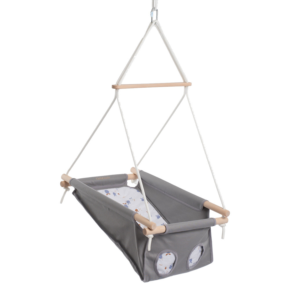 Chill&Smile klasszikus babahinta – Természetes Kényelem és Biztonság A hintázás nemcsak játék, hanem a fejlődés része is. A mozgás koordinációja, az egyensúlyérzék ésa térbeli tájékozódás mind javulnak, miközben a gyerekek örömmel hintáznak. A szülők számára pedig a hintázás lehetőséget ad arra, hogy egy pillanatra megálljanak, és élvezzék a gyermekükboldogságát. Minden egyes hinta gondosan lett megtervezve, hogy a baba és a szülők számára is örömteli és pihentető élményt nyújtson. Az otthon melege, a természetesség és a szeretet mindmegjelennek ezekben a hintákban, amelyek acsaládi pillanatok különleges részévé válnak.A hinták nevei szorosan kapcsolódnak a szülői szeretethez és gyengédséghez. Minden egyes név egy becézés, amit sok szülő használ gyermeke számára. Ezek az elnevezések - mint Virágszál, Kincsem, Bogyó, Csillagom és Manó - azt a szeretetet és törődést tükrözik, amit a szülők éreznek gyermekeik iránt. A hinták is ezt az érzést hivatottak megtestesíteni: kényelmet, biztonságotés a szeretet ölelését nyújtják a legkisebbek számára.A klasszikus babahinta a tökéletes választás azoknak a szülőknek, akik természetes anyagokból készült, biztonságos és kényelmes hintát keresnek gyermekük számára. Ideális újszülött kortól akár 3 éves korig, segít megnyugtatni és szórakoztatni a babát. Főbb jellemzők: 1.Kényelmes és ergonomikus kialakítás A babahinta puha, légáteresztő pamutból készült, amely biztosítja a baba kényelmét és támogatja az egészséges testtartást. A hintázó mozgás nyugtató hatású, segíti az altatást és hozzájárul a baba egyensúlyérzékének fejlődéséhez. 2.Biztonság mindenek felett A biztonsági öv gondoskodik arról, hogy a baba biztonságosan helyezkedjen el a hintában. Az erős, strapabíró fa keret és a megbízható rögzítési rendszer stabil használatot garantál. 3.Könnyû használat és hordozhatóság A babahinta egyszerûen felszerelhető beltéren és kültéren egyaránt. Kompakt méretének és könnyû szerkezetének köszönhetően könnyen mozgatható, így bárhová magaddal viheted, hogy gyermeked mindig otthon érezhesse magát. 4.Természetes anyagok A természetes pamut és fenntartható forrásból származó fa alkatrészek biztosítják, hogy a babahinta környezetbarát és bababarát legyen. Mûszaki adatok: - Ajánlott életkor: 0-3 év - Terhelhetőség: max. 15 kg - Anyagok: 100% pamut huzat, természetes fa - Tartozékok: biztonsági öv, állítható magasságú kötélzet, hintapárnaRendeld meg most, és ajándékozd meg gyermekedet a hintázás örömével!Klasszikus Babahinta – egyszerûség, amely sosem megy ki a divatból.
