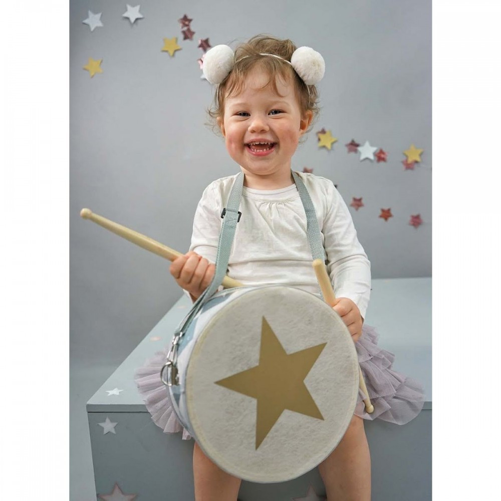 • Könnyű súly és méret: A dob mérete és súlya ideális a kisgyermekek számára, így könnyen tudják tartani és kezelni. Ez lehetővé teszi, hogy a gyermekek kényelmesen és biztonságosan játszhassanak a dobbal.