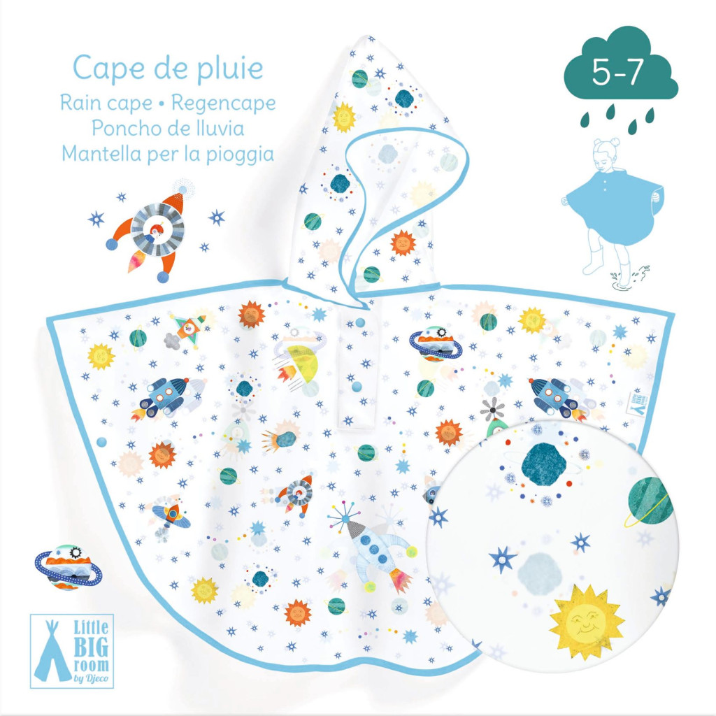 Csuklyás esőkabát (5-7 éves korig), elegáns és praktikus. Puha és rugalmas, kellemes viselet, és jól kíséri a gyermek mozgását. Nyomógombjainak köszönhetően könnyen felvehető. Ideális kiegészítő az esős kirándulások feldobásához!