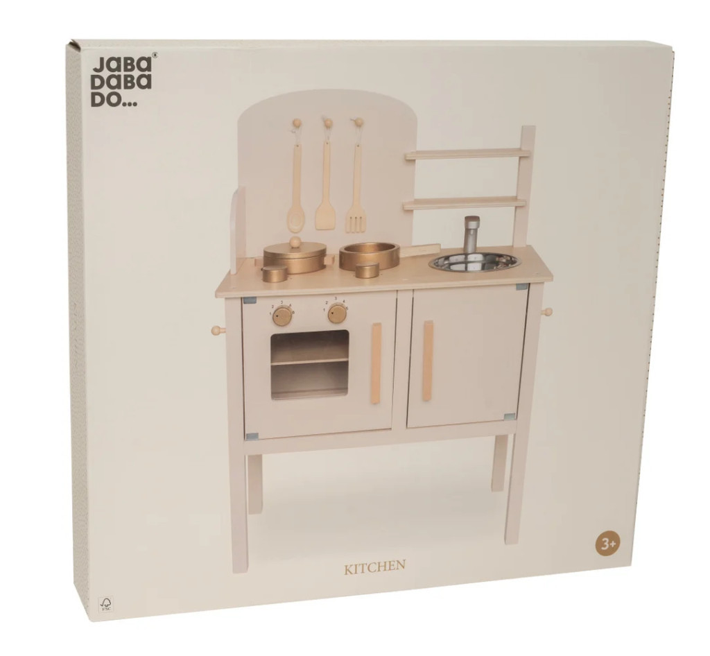 • Termék neve: Fa játékkonyha kiegészítőkkel és kréta táblával, krém színű Jabadabado