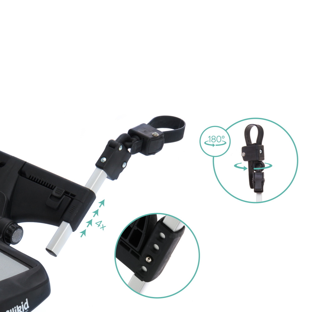 Ha a gyermeknek éppen nincs szüksége a testvérfellépõre, egyszerûen rögzítheti a babakocsi tolókarjához egy pánttal.