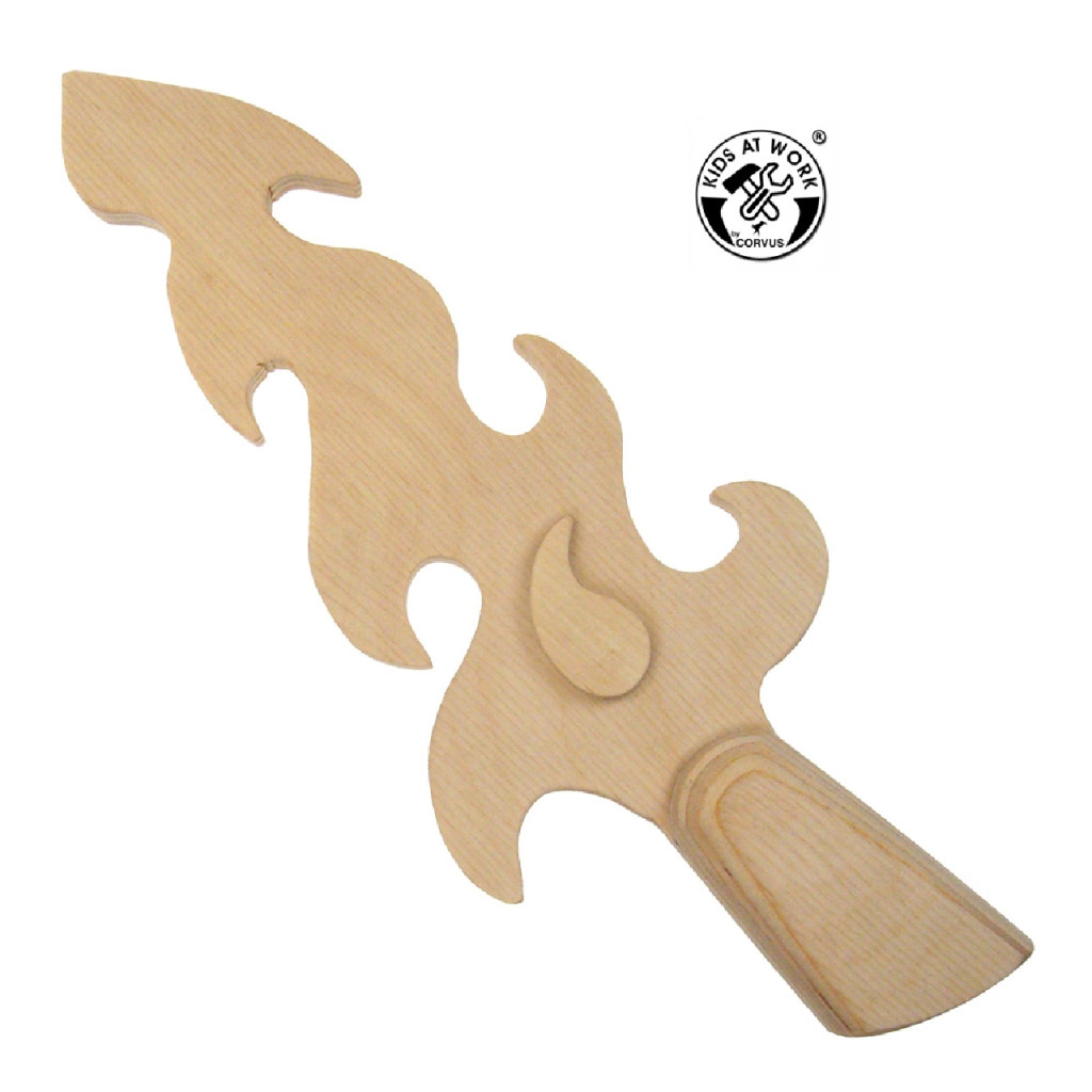 A nyírfa lemezből, a csomagolásban lévő sablon segítségével megrajzolható és utána lombfűrésszel kivágható a tőr és az alkatrészei. Az elkészítéshez szükséged lehet lombfűrészre, fúrógépre, fúrószálra, párhuzam szorítóra, mini csipeszre, faragasztóra, ráspolyra, fareszelőre, csiszolópapírra.