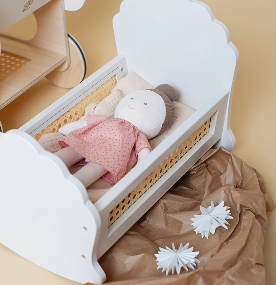 A Jabadabado bababölcső szép krémszínű és dekoratív rattanszerű részletekkel rendelkezik. Fektesd ágyba a babát vagy plüssállatot, és ringasd álomba kis barátodat. Ez egy klasszikus játék, amely tökéletesen illik a gyerekszobába, és ugyanebben a Jabadabado sorozatban egy hozzá illő babaszék és babakocsi is található, amelyek még szórakoztatóbbá és fantáziadúsabbá teszik a játékot. A gyerekek szeretik azt játszani, amit a felnőttek a való életben is csinálnak, ezért hagyd, hogy a kicsik saját babát kapjanak, akiről gondoskodhatnak. Ösztönzi a kreatív szerepjátékot.