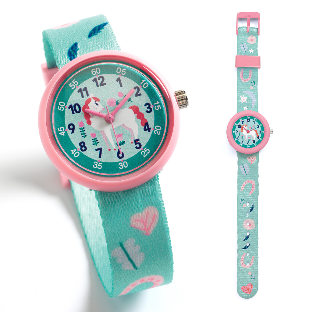 Hagyományos számlappal készült, értékes karóra kisgyermekek számára. A hagyományos számlapon mutatott idő leolvasásának a megtanulása még ma is elegendhetetlen, mert a digitális kijelzők nem nyújtják azokat a fontos fejlődési pontokat, mint amit a számlapos órák. Arabszámokkal írt óraszámlapok után, majd később, a római számos számlapos óra segít a római számok felfogásában, megjegyzésében is. A Djeco óraszerkezeteteit a japán Miyota cég és márka készti különleges gonddal a gyermekek számára. A Miyota gyár meghagyja az órásoknak az óra designjét, kizárólag óraszerkezeteket gyárt, a svájci órák preczitásával, ám elérhető áron. Küldetésük megfogalmazása: Kiváló minőségű órák szállítása a lehető legtöbb ember számára. Miyota elkötelezett azért, hogy értéket teremtsen  a következő generációk számára. Ennek a megvalósulása a Djeco tervező csapatával közösen megalakotott gyermekek számára a készült karóra.