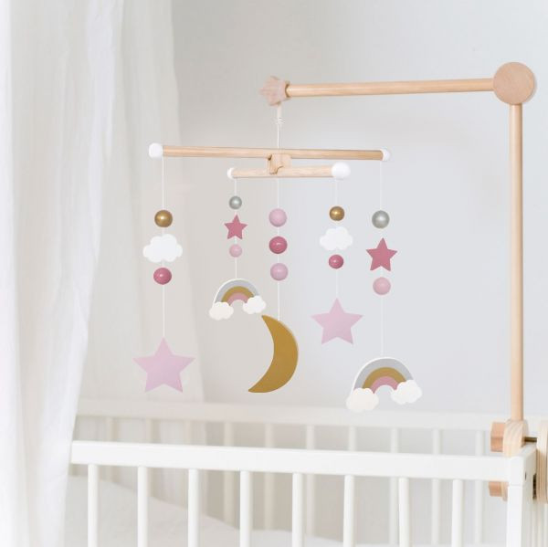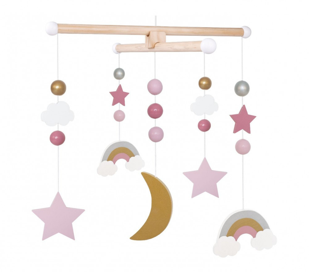 Kiságyforgó szivárványos pasztell rózsaszín, arany Jabadabado