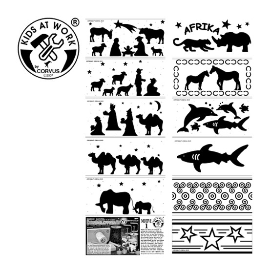 A csomagban 5 ív található, mindeegyik íven 11 különböző téma. A papírokat a jelölések mentén kell szétvágni, azután konzervdoboz mécsesek oldalára lehet ragasztani.