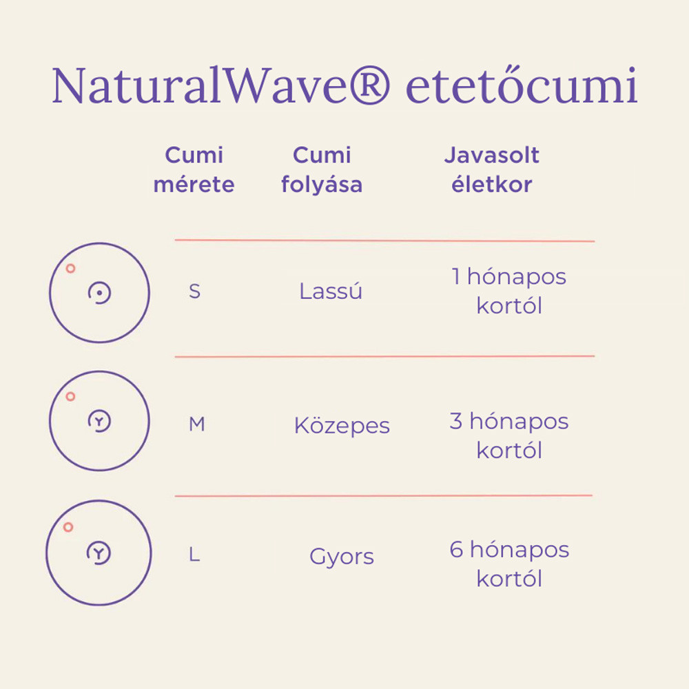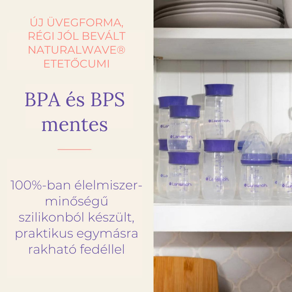 Kifejezetten szoptatott babáknak is fejlesztették. Könnyű váltást biztosít a szoptatásról a cumisüvegre és vissza. Lassú folyáserősségű, természetes hullámvonalú etetőcumival. Az etetőcumi a baba nyelvét hullámszerű mozgásra ösztönzi a száj és állkapocs természetes fejlődéséért. Csak a baba szívására ürül. Segít fenntartani a bevált szopási módot.– Csak a baba szívására nyílik meg, ezért a fogorvosok kiemelten ajánlják.– Egybeöntött, különböző vastagságú és textúrált, hasonló, mint a mellbimbó és a bimbóudvar.– Extra puha, 100% szilikonból készült.– Formája az anyamellet utánozza, rugalmas, nyújtható anyagú, hosszú élettartamú.– Egyedülálló, fokozatosan ívelt kialakítása lehetővé teszi a természeteshez közeli szopási folyamatot.– Dupla peremmel fekszik fel az üveg nyakára, ezért 100%-ban cseppmentes.– A levegőáramlást biztosító speciális szelepe miatt kevesebb a lenyelt levegő, a hasfájás és ritkább a bukás.– A cumi csúcsában lévő megerősítések megakadályozzák az összetapadását.Mielőtt cumisüvegből etetnétek a picit lehetőleg várjátok meg, hogy begyakorolja melleden a szopási technikát.Mindig szoptatás előzze meg a hozzátáplálást!A babák szopási folyamata:1. Ajkait kifelé fordítva rátapad a bimbóra és bimbóudvarra.2. Nyelve hullámszerű mozgással összenyomja a bimbót és a szájüregében lévő vákuummal kiüríti a tejet.3. Nyelvének hátsó része megemelkedik és a tejet a nyelőcsőbe vezeti, lenyeli.A Lansinoh etetőcumi támogatja ezt a természetes szopási folyamatot!A kizárólagos szoptatás ajánlott a babák életének első 6 hónapjában- Fontos! A termék egészségvédelmi és higiéniai terméknek minősül. Amennyiben a csomagolás felbontásra került, vagy a kipróbálás jelei látszódnak a terméken, úgy a 14 napos elállási jog érvényét veszíti a 45/2014. (II. 26.) korm. rendelet 29. § (1) bekezdése alapján.