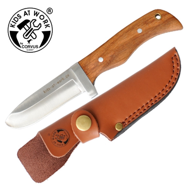 A faragókéshez tartozik egy övre fűzhető bőrtok, ami a segít, hogy mindig, és biztonságosan kéznél legyen. A fogórész fából készült, igényes, ergonómikus kivitelű. A kés használata 14 év alatti gyermekeknek felnőtt felügyelete mellett ajánlott!