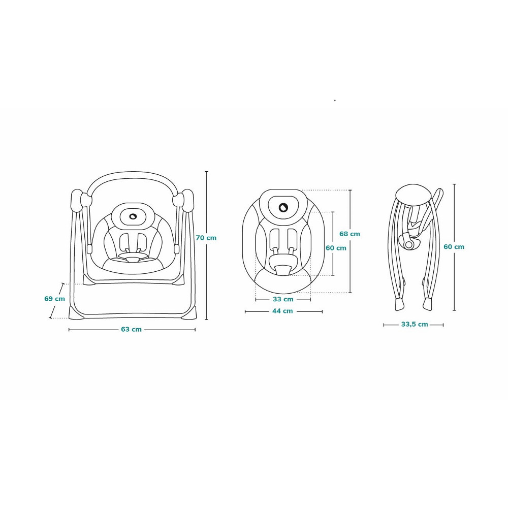 • Biztonságos kialakítás: A hinta biztonságos kialakítással rendelkezik, beleértve az 5 pontos biztonsági övet, amely megakadályozza, hogy a baba kiesjen a hintából.