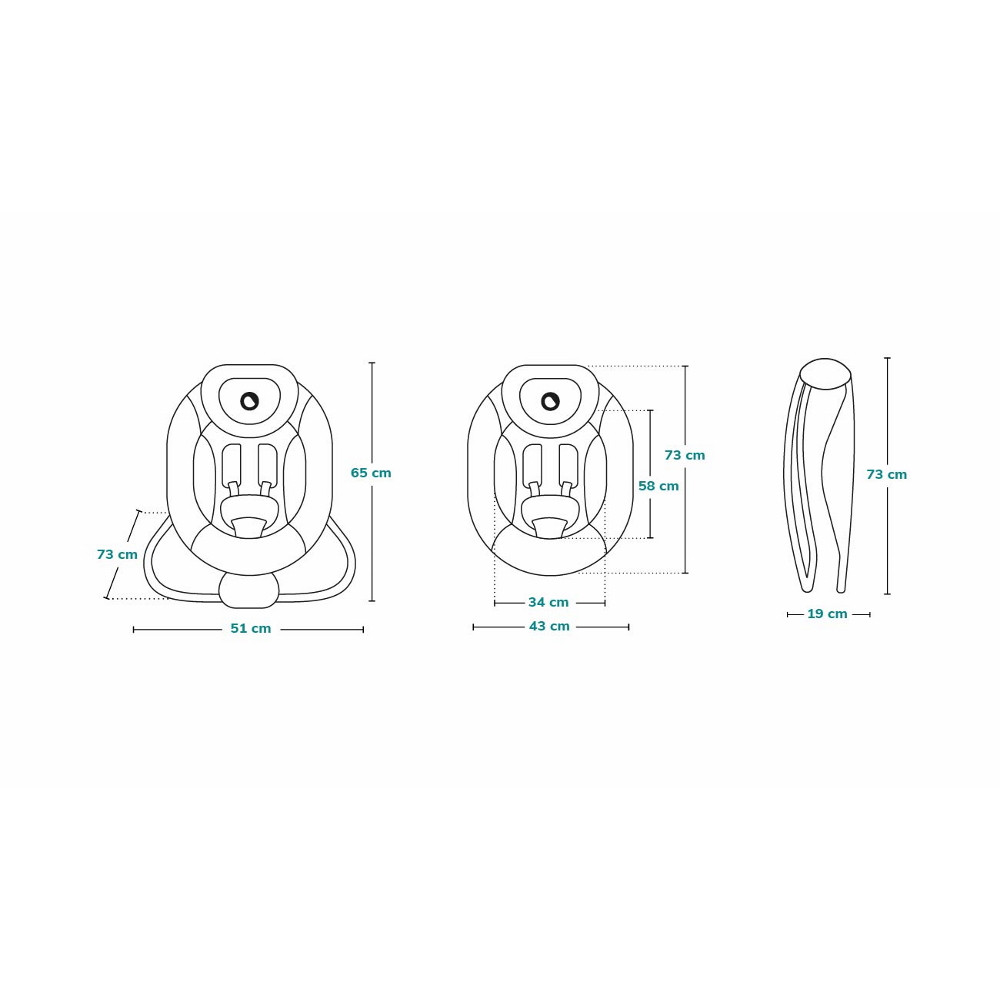 • Kényelem és biztonság: A puha, légáteresztő anyagok és az ergonomikus kialakítás garantálja a babád maximális kényelmét és biztonságát. A biztonsági öv megakadályozza, hogy a baba kicsússzon a pihenőszékből.
