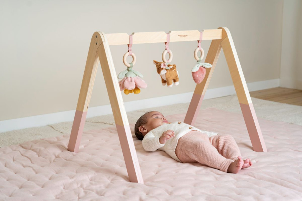 A Little Dutch babatornáztató - Fairy Garden biztonságos és puha anyagokból készült, amelyek nem tartalmaznak káros anyagokat. Ez azért előnyös, mert a szülők nyugodtak lehetnek, hogy gyermekük nem érintkezik káros anyagokkal, és biztonságban játszhat a babatornáztatóval.