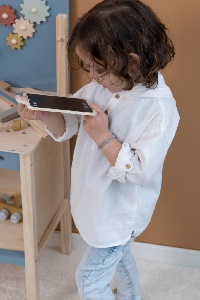 A Little Dutch Fa Munkapad letisztult, modern designjával és kellemes pasztellszíneivel tökéletesen illeszkedik bármely gyerekszobába vagy akár a nappaliba is. Nemcsak egy játék, hanem egy ízléses kiegészítője is lehet otthonának, amely harmonizál a modern enteriőrrel. A gondos kidolgozás és a sima felület kellemes tapintásúvá teszi a játékot, fokozva az élményt.