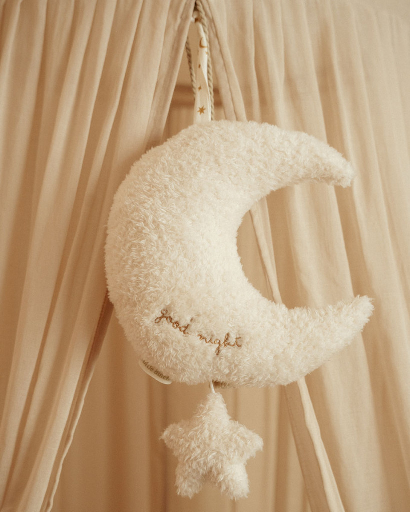 • Megnyugtató és altató hatás: A beépített zenélő doboz a klasszikus Brahms' Lullaby (Brahms altatója) lágy dallamát játssza le, ami bizonyítottan nyugtató hatással van a csecsemőkre. Segít a napi rutinhoz kapcsolódó rituálék kialakításában, és elcsendesíti a picit, amikor aludni tér.
