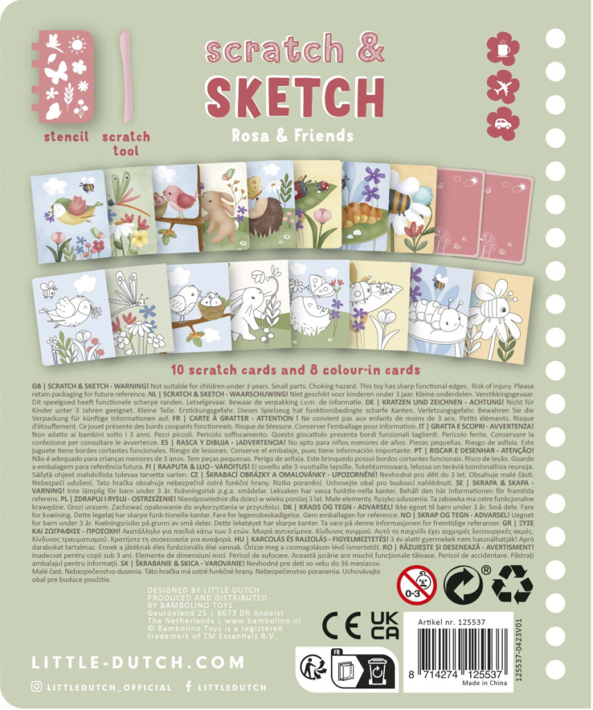 A Little Dutch karckép készítő füzet - Rosa és barátai egy varázslatos világot nyit meg a kis művészek előtt. Ez a kreatív játék nem csupán szórakoztató, hanem fejleszti a finommotoros készségeket, a képzelőerőt és a koncentrációt is. A füzetben található rejtett képek a speciális karcoló pálcika segítségével kelnek életre, felfedve a színes és vidám Rosa és barátai motívumokat. A Little Dutch karckép készítő füzet ideális választás óvodás és kisiskolás gyermekek számára, akik szeretnek alkotni és felfedezni. Kiemelkedő a piacon, mert ötvözi a hagyományos rajzolás örömét a meglepetés izgalmával, miközben minőségi anyagokból készült, biztonságos játékélményt nyújt.