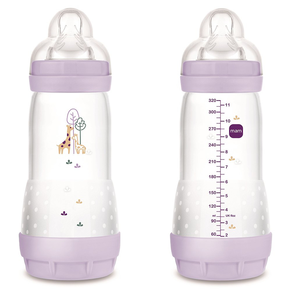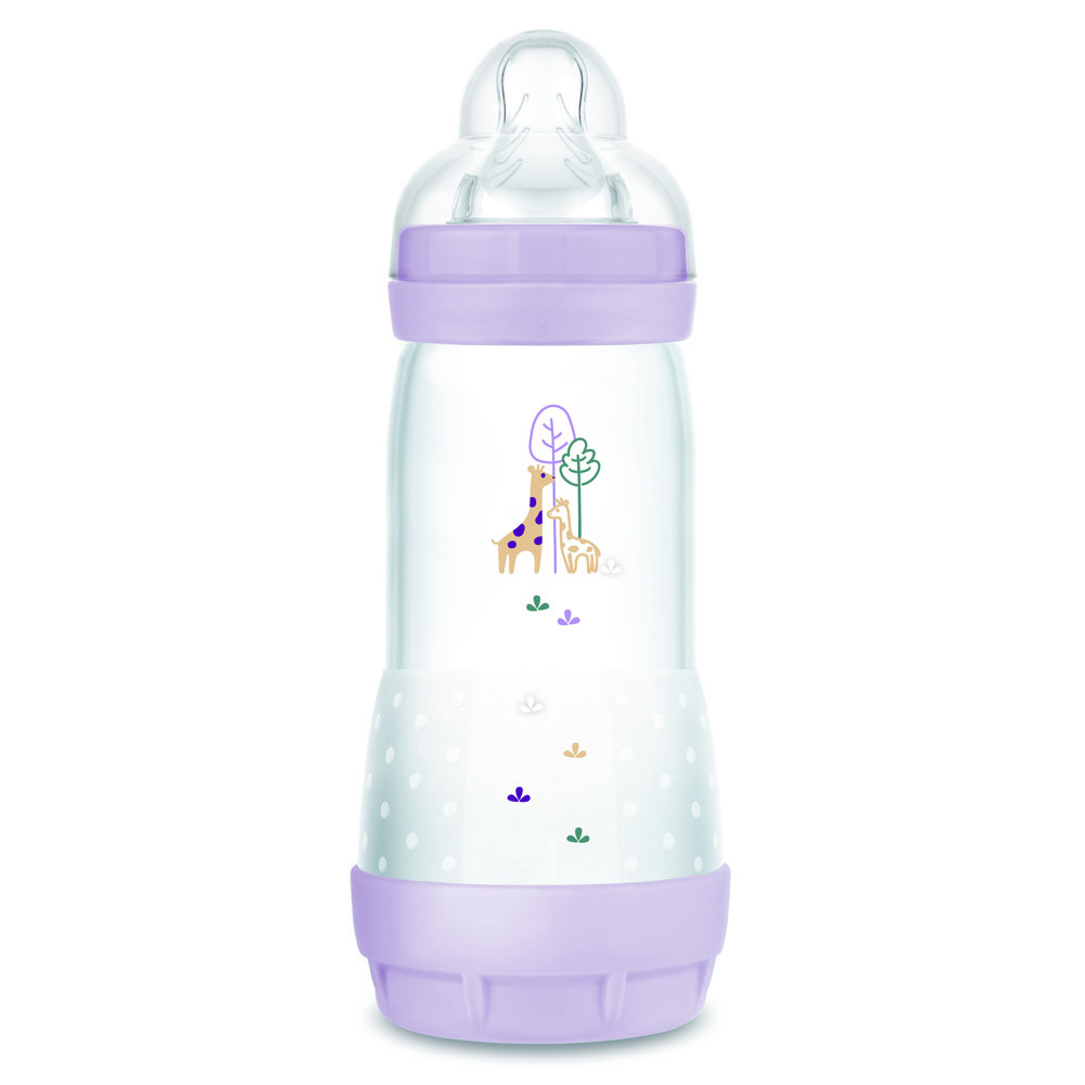 A természet ihlette színekkel és mintákkal ellátott 320 ml-es MAM Anti-Colic Matt Forest az ideális cumisüveg kisbabáknak: a babák saját tempójukban, teljesen ellazulva ihatnak.