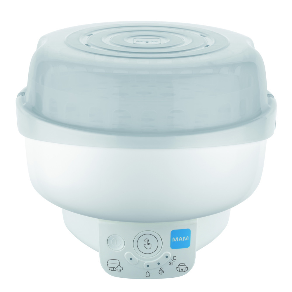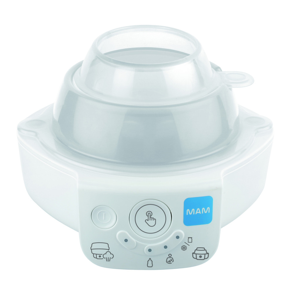 A melegítés és a sterilizálás még sosem volt ilyen egyszerû. A MAM Elektromos sterilizáló és expressz cumisüveg-melegítõ 6 újszerû funkcióval rendelkezik 1 készüléken belül.
