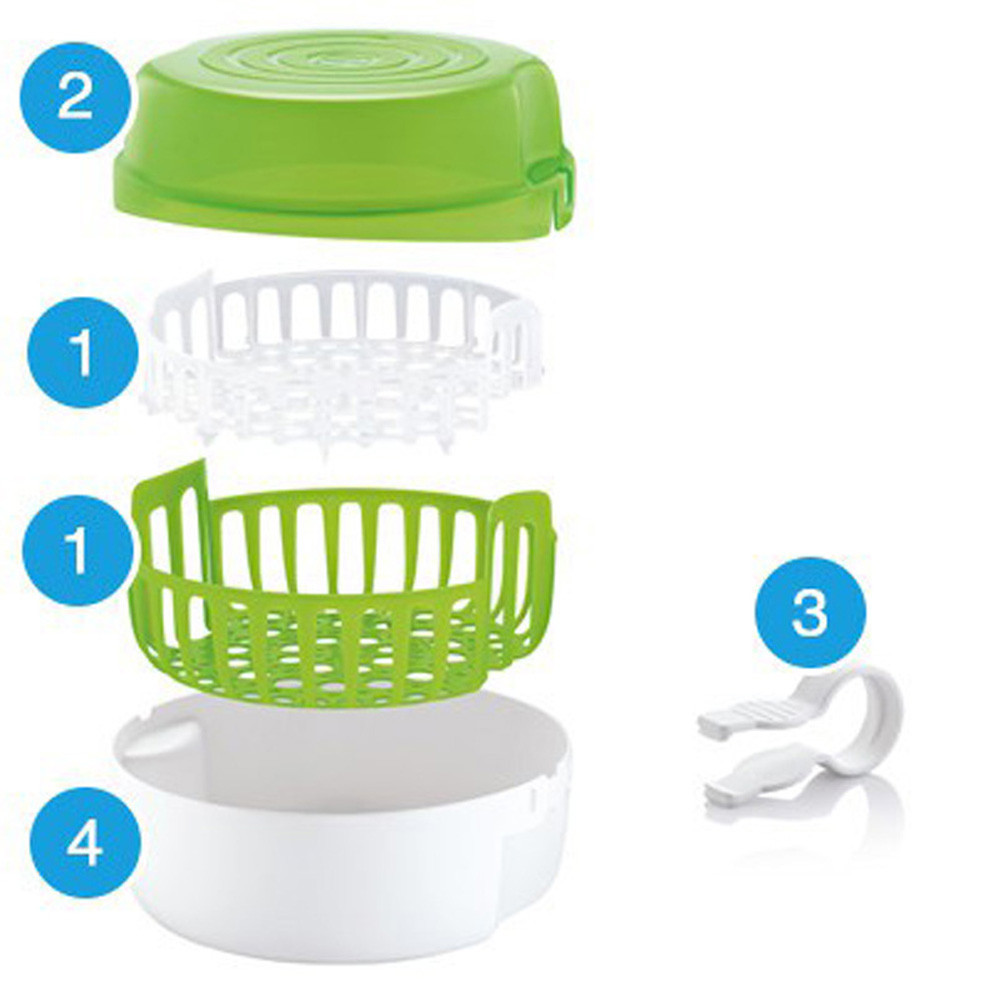 A Mam mikrohullámú sterilizáló doboz segítségével a háztartásokban elõforduló baktériumok 99%-át eltüntetheted a kisbabád által használt cumisüvegekrõl és cumikról. A legtöbb mikrohullámú sütõvel kompatibilis.