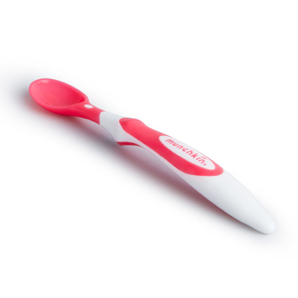 A Munchkin Soft Tip puhafejû etetõkanál a kiváló segítség a hozzátáplálás kezdetén, amikor a babát a szilárd ételek megismertetjük. Ekkor még nem használhatunk akármilyen kanalat, hiszen a babák szája és ínye sokkal érzékenyebb, mint egy felnõtté. A kényelmes fogású nyél pedig éppen megfelelõ hosszúságú ahhoz, hogy még a bébiételes üvegek aljáról is kikanalazhasd a finom falatokat.